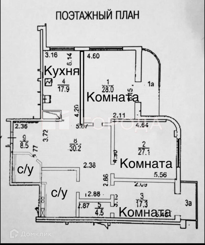 Жилая площадь 72.4 м2