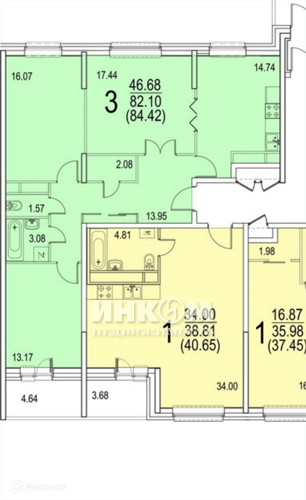 3-комнатная квартира, 85 м2, этаж 2 / 25, на продажу в Москве, 6-я Радиальная улица, 7/1к1