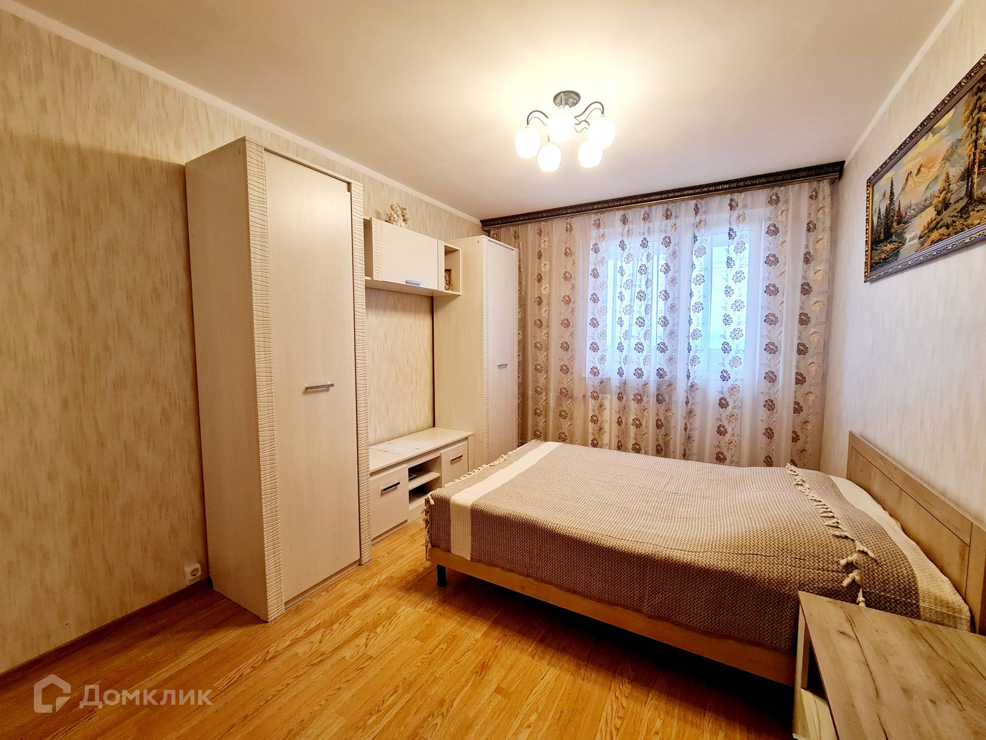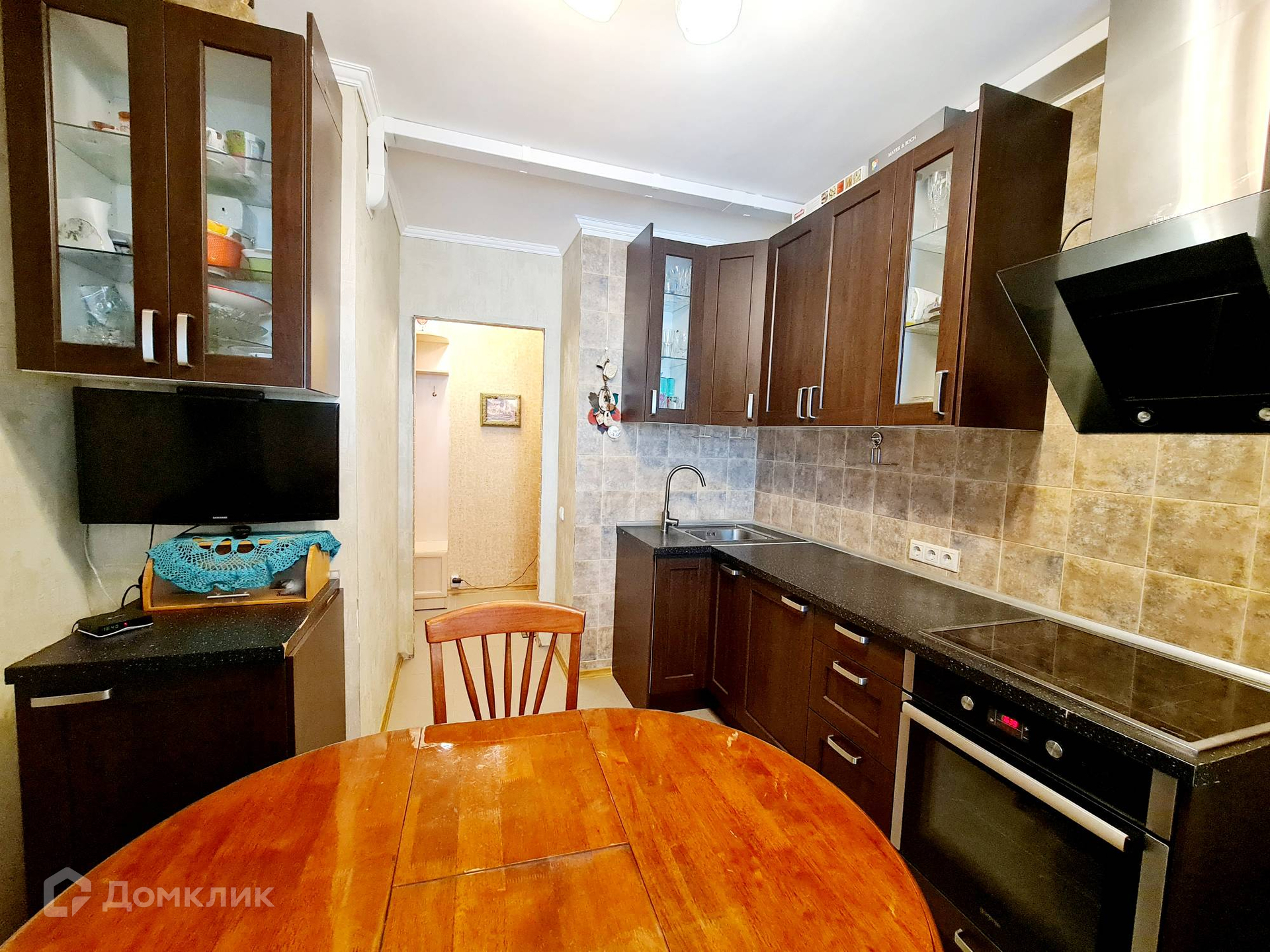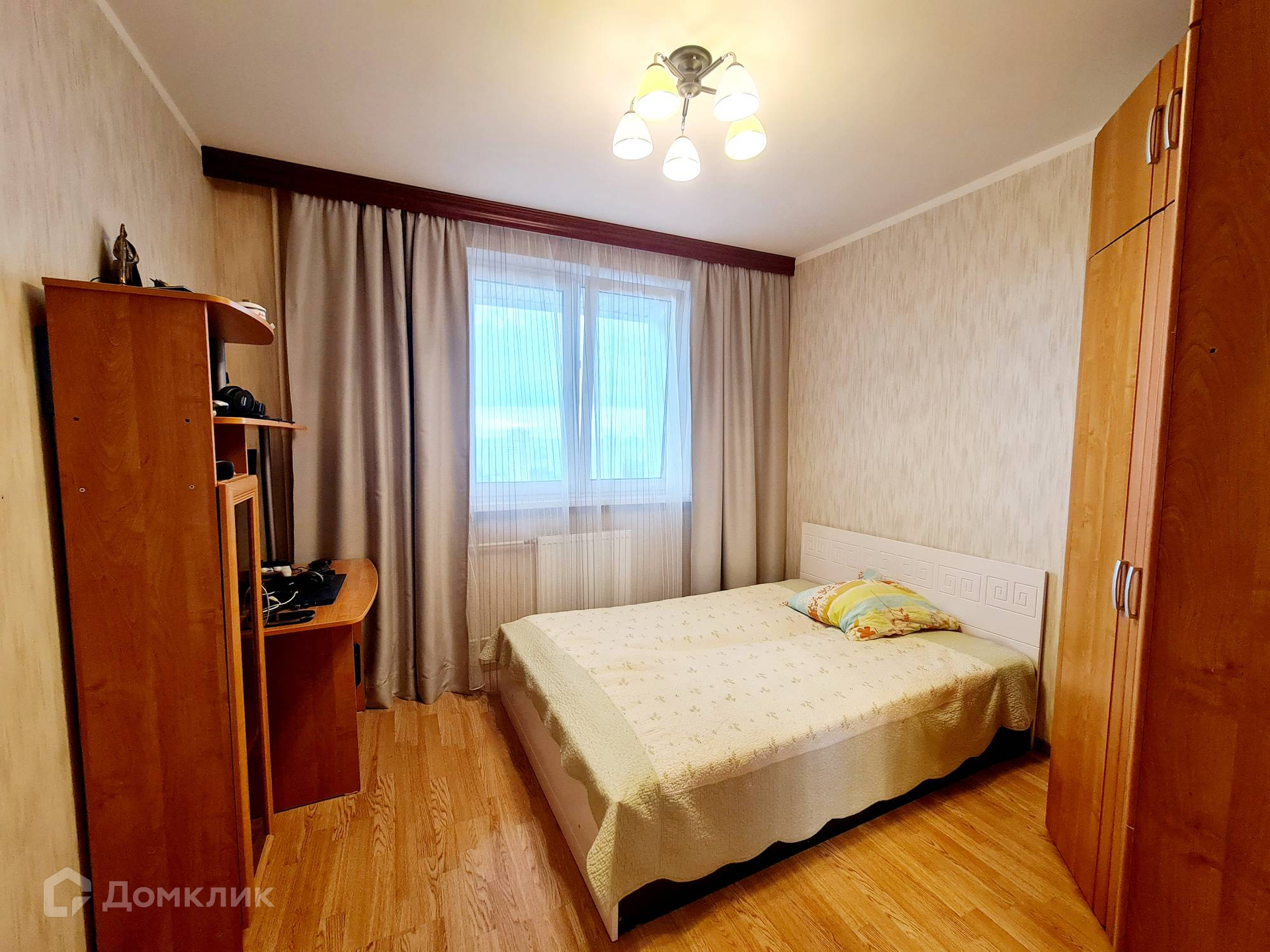 Квартира в жилом состоянии: на полу ламинат (комнаты) и плитка (коридор, кухня, санузел), стены - обои. Меблирована: встроенная кухня и техника (варочная панель, духовой шкаф, вытяжка); спальные места, шкафы - возможна продажа со всей мебелью и техникой.