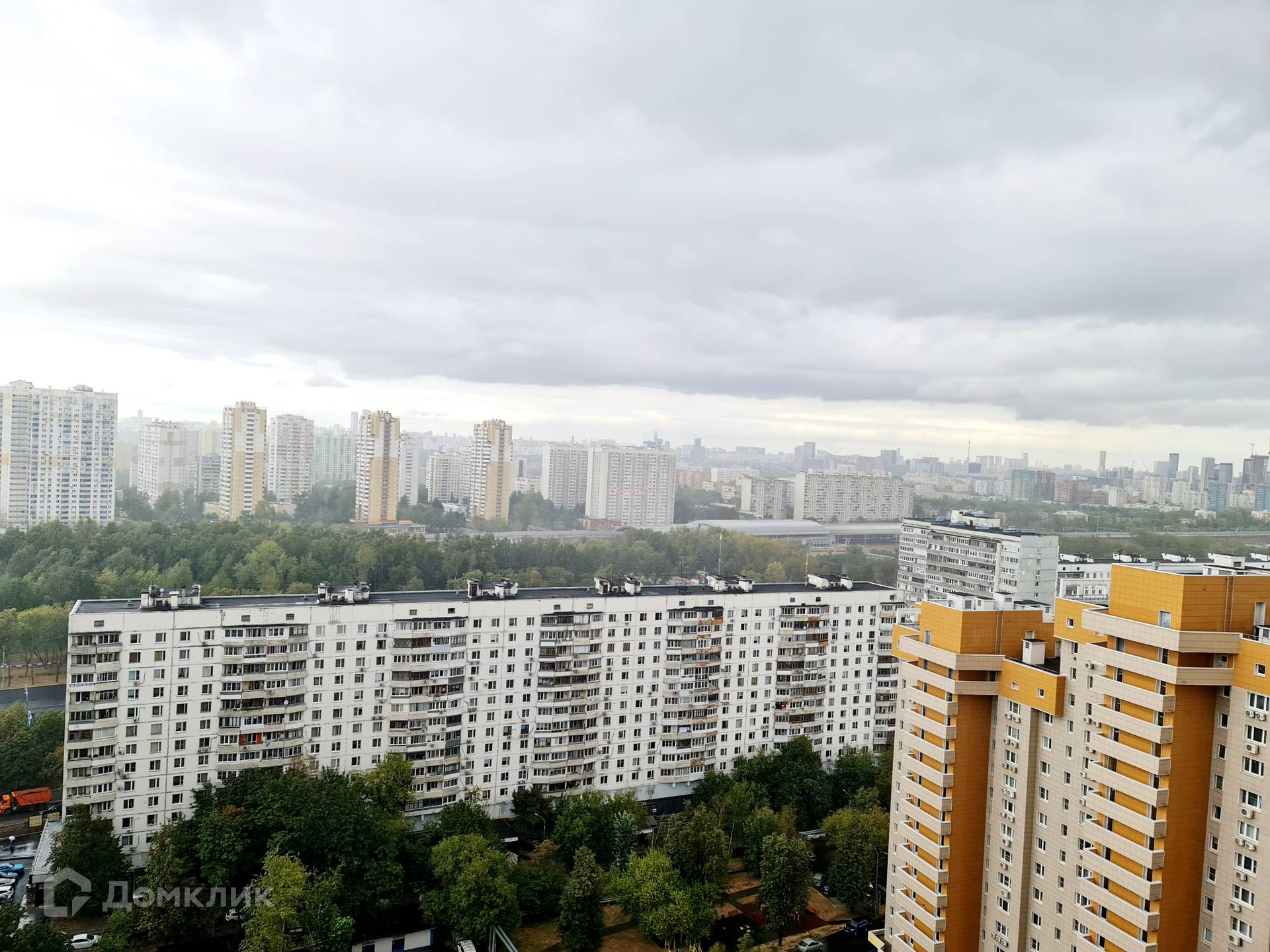 Окна на две стороны: кухня и две комнаты - во двор, в сторону Кутузовского проспекта; одна комната в сторону Долины реки Сетунь - панорамный вид за счет высокого этажа.