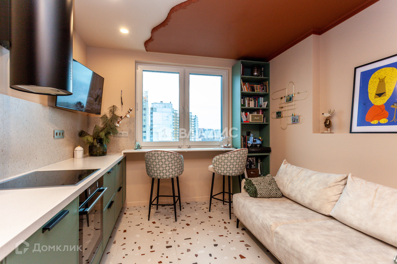 Уютная кухня- гостиная оборудована дорогим гарнитуром, весьма вместительным и функциональным, так же: