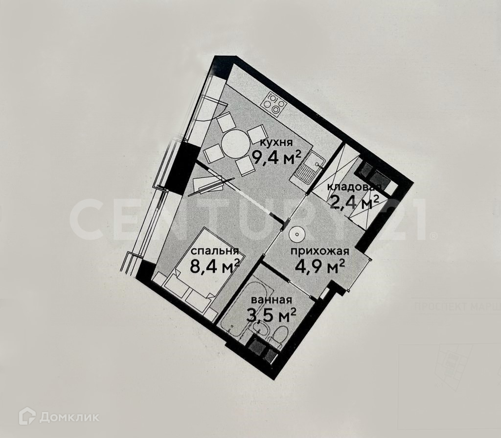 Жилая площадь 8.4 м2