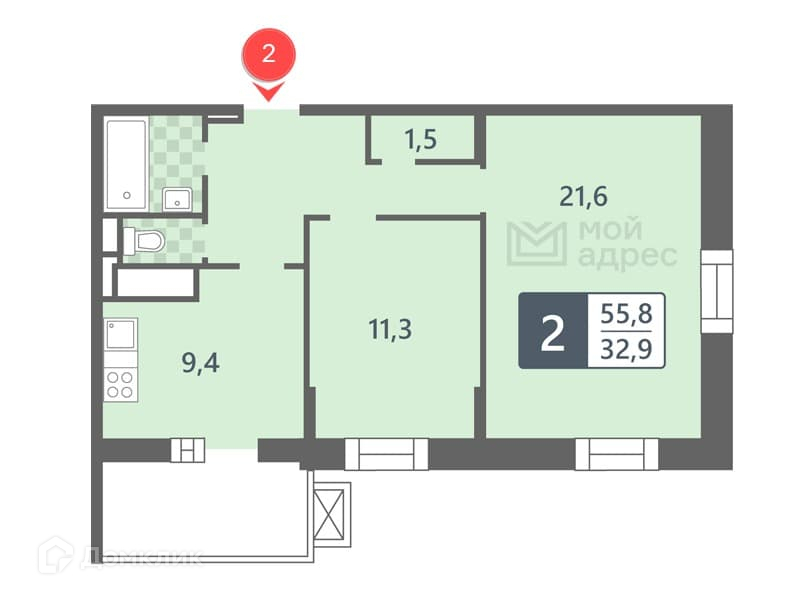 Общая площадь 55.8 м2