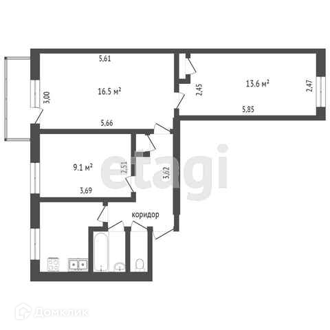 Продаётся 3-к квартира