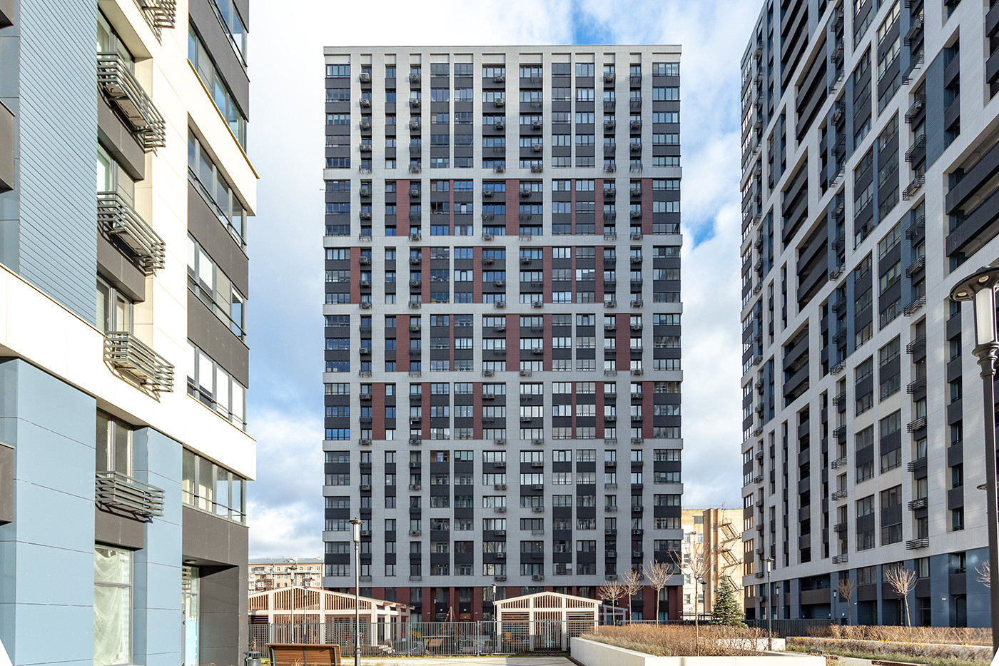 На внутренней огороженной территории комплекса создано комфортное пространство для отдыха и занятий спортом. На территории есть свой детский сад, магазины, кафе. В четырехстах метрах от комплекса начинается Петровский парк. Рядом с парком находится легендарный стадион "Динамо".