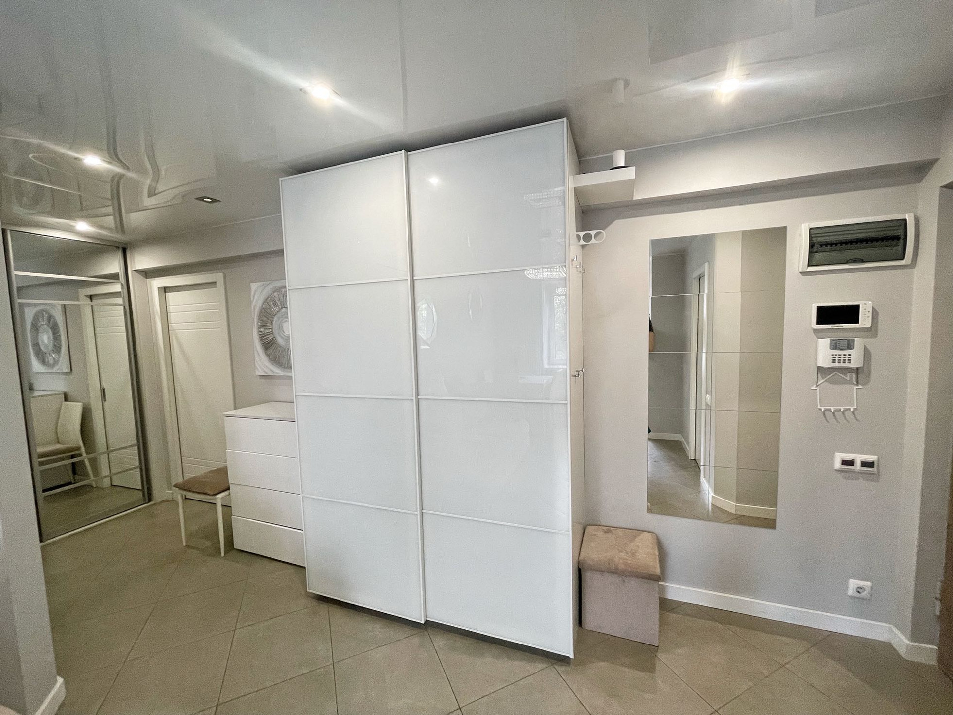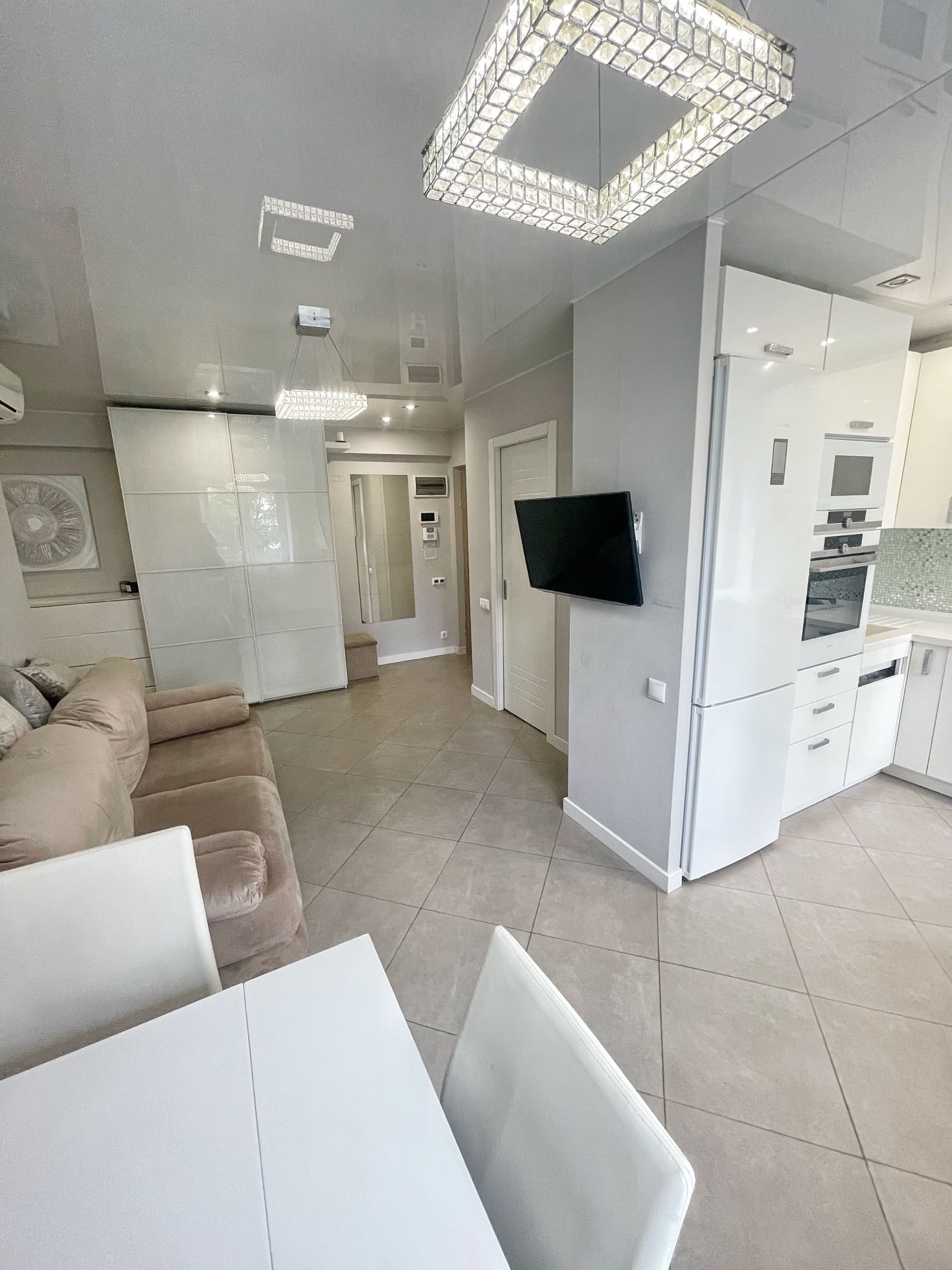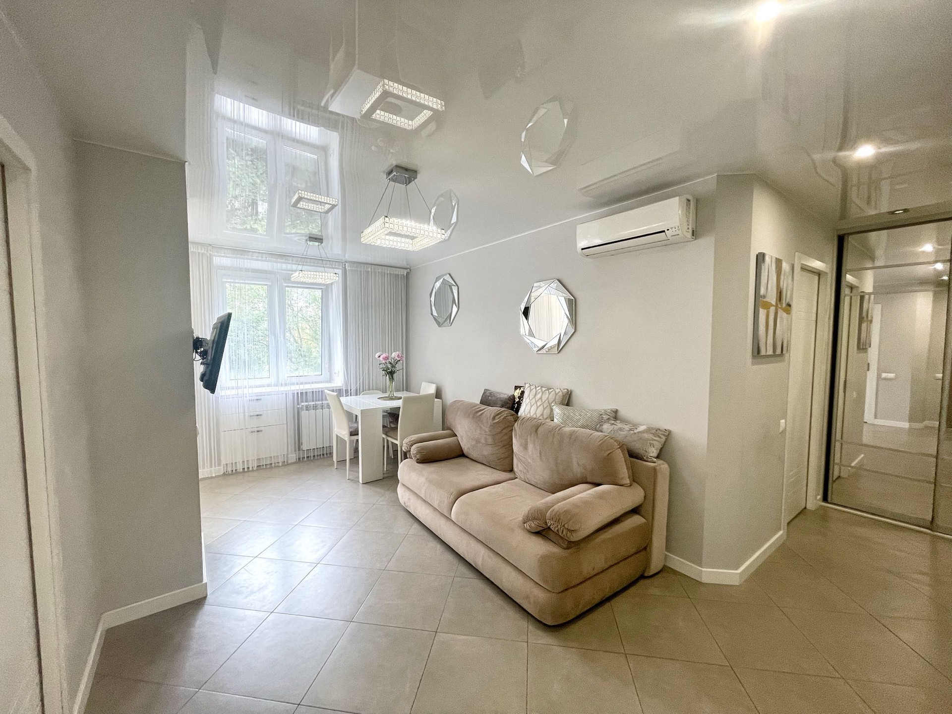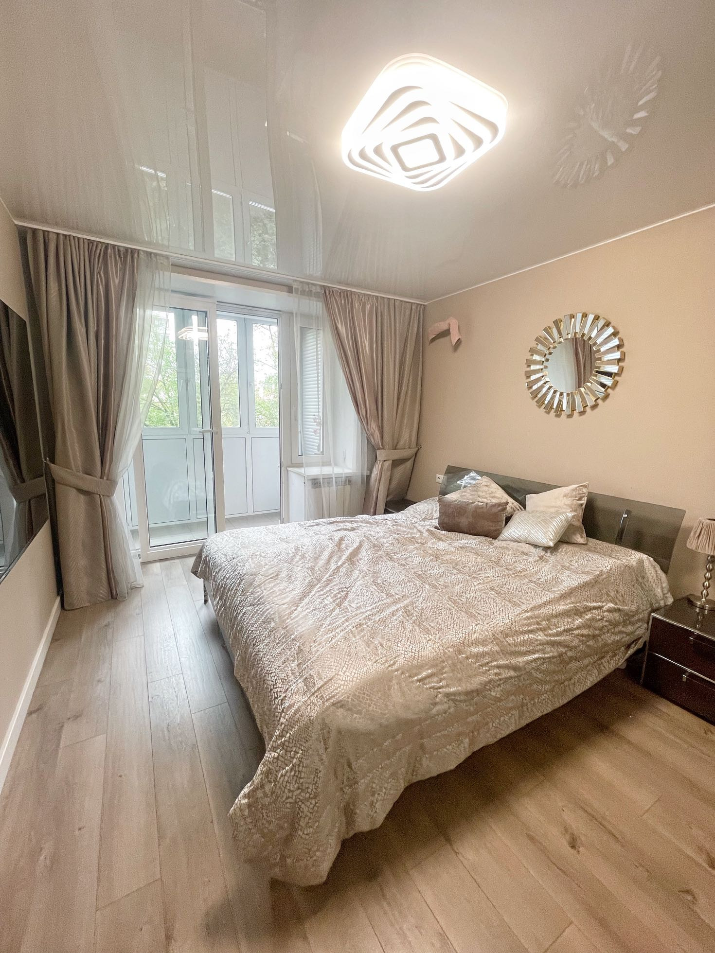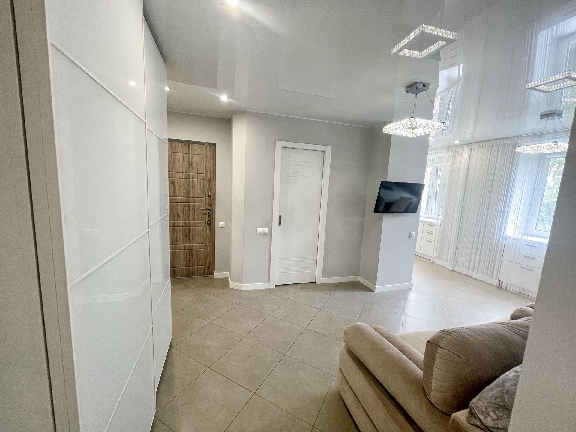 В квартире выполнен качественный дизайнерский ремонт в современном стиле.Выделена отдельно гардеробная комната, разведены теплые полы в коридоре и кухне-гостиной, установлено видео наблюдение. В комнате сделано панорамное балконное остекление. Квартира распашного типа, выходит на обе стороны дома.