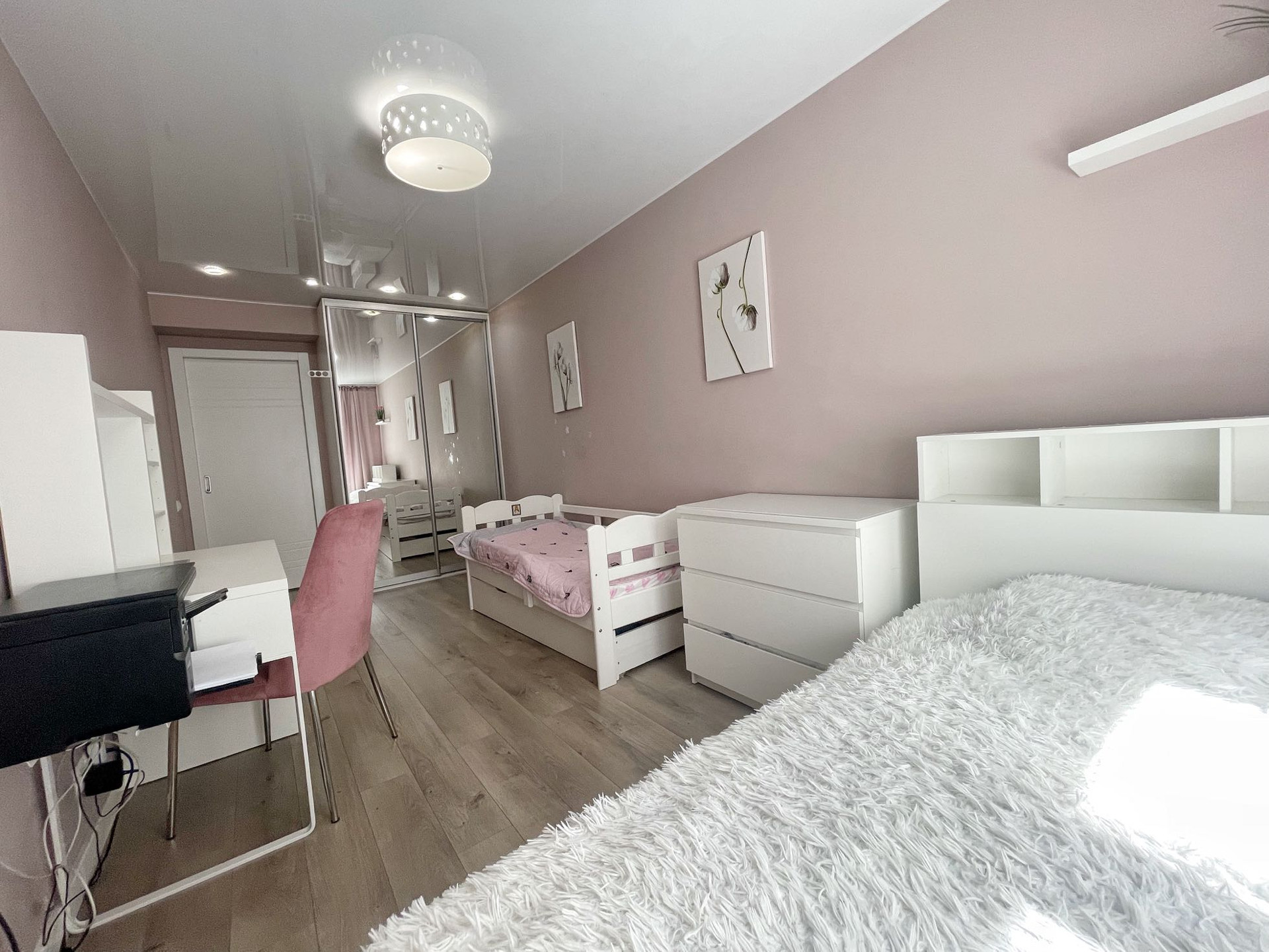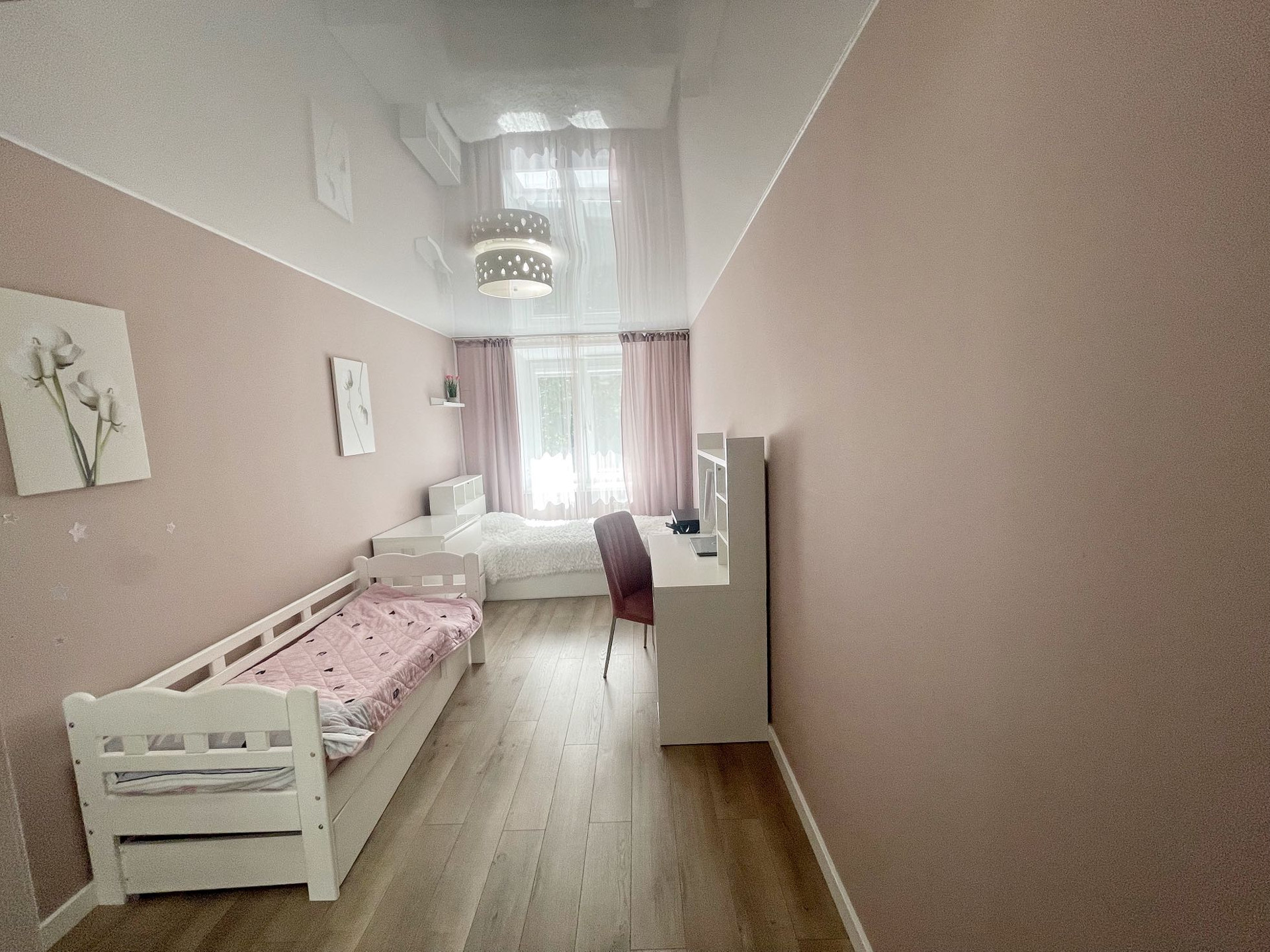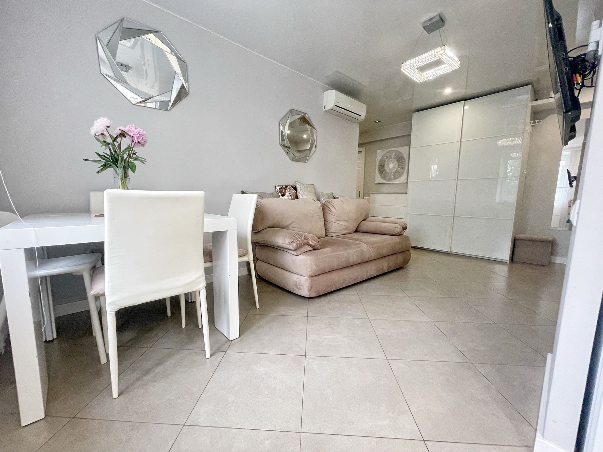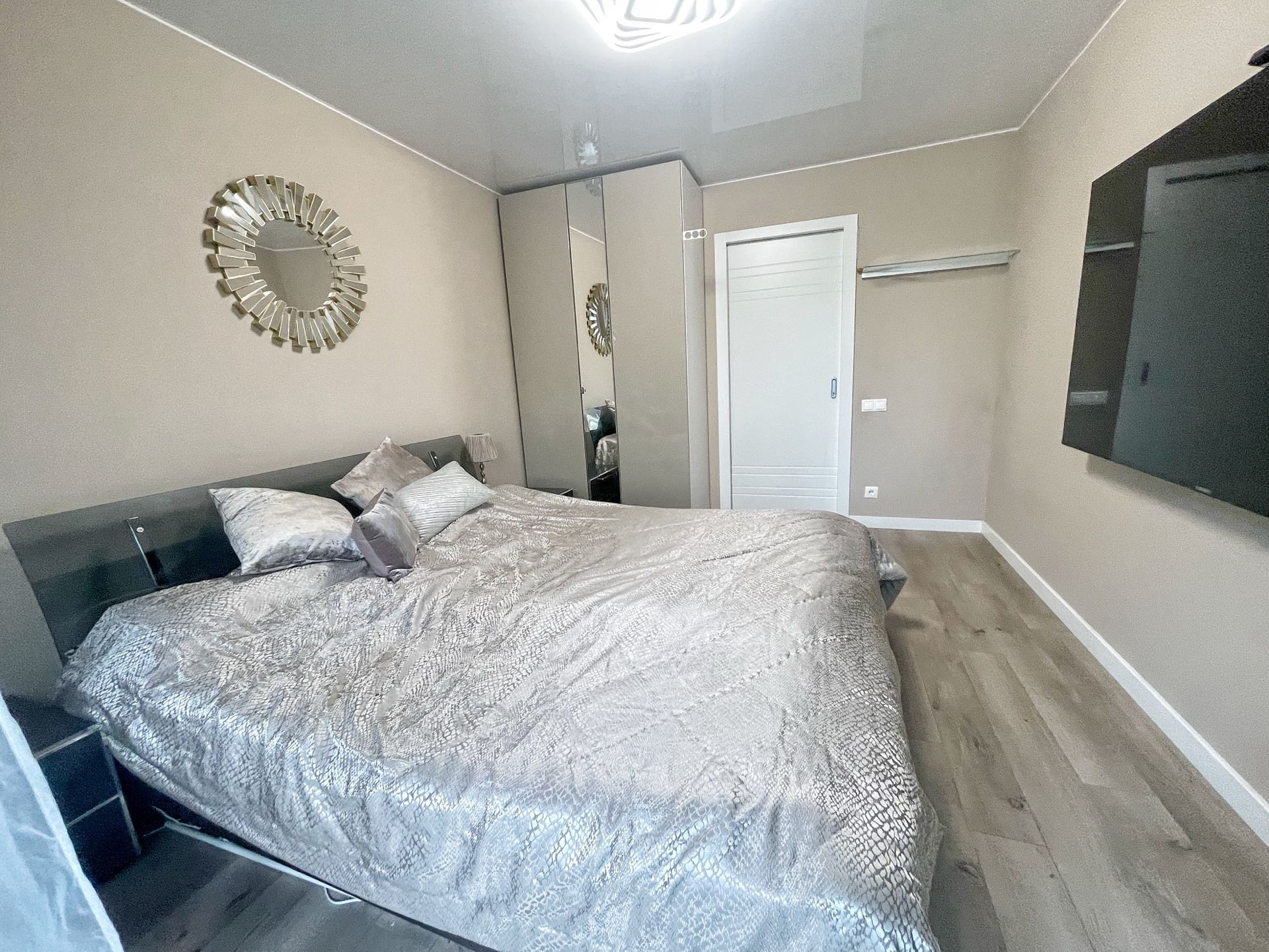 В квартире выполнен качественный дизайнерский ремонт в современном стиле.Выделена отдельно гардеробная комната, разведены теплые полы в коридоре и кухне-гостиной, установлено видео наблюдение. В комнате сделано панорамное балконное остекление. Квартира распашного типа, выходит на обе стороны дома.