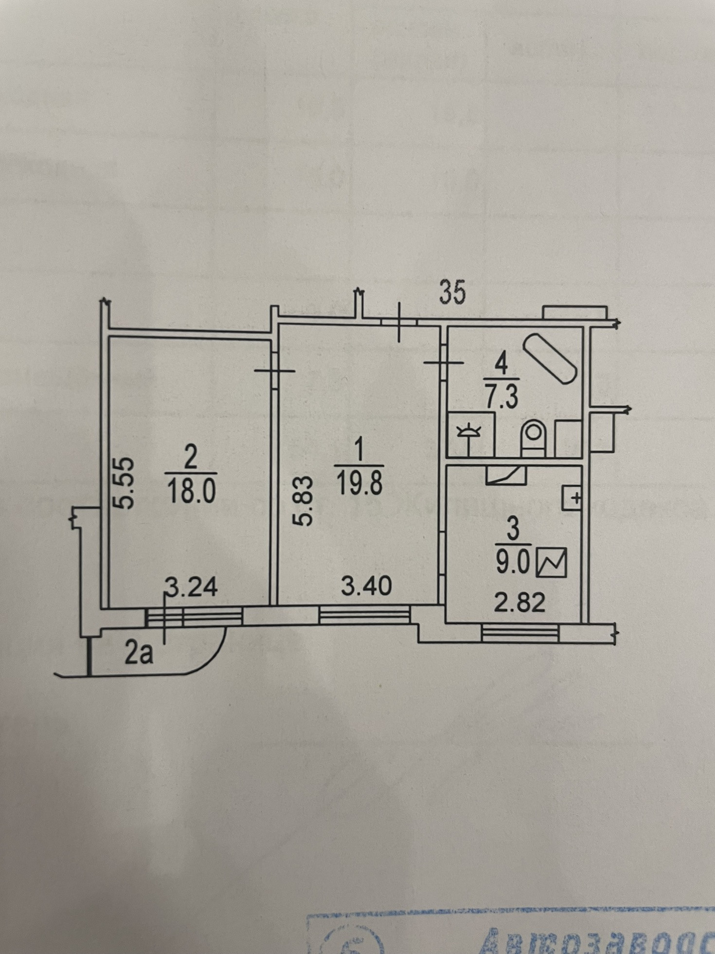 Жилая площадь 37.8 м2