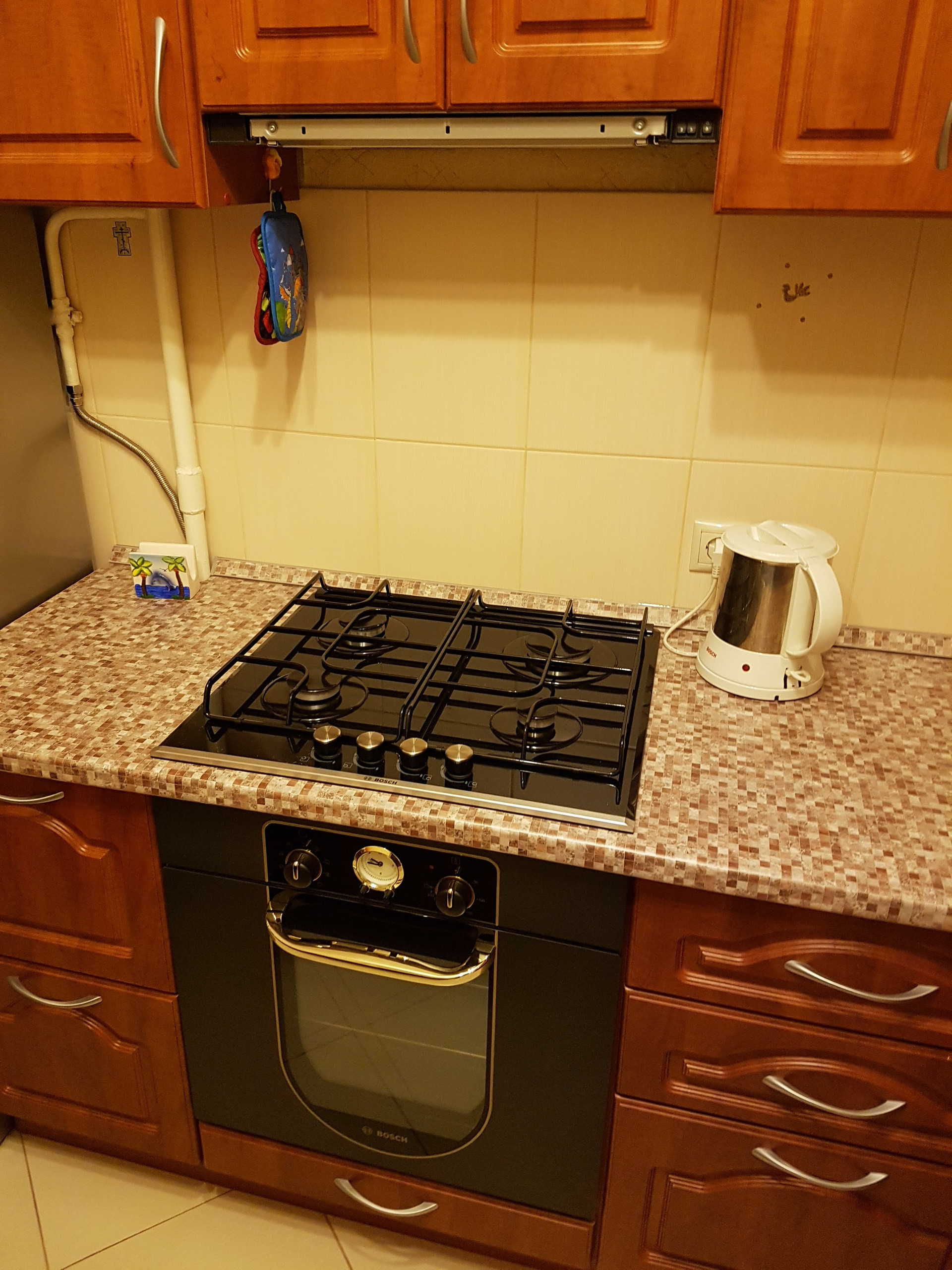 Газовая плита и встроенная духовка Bosch, вытяжка.