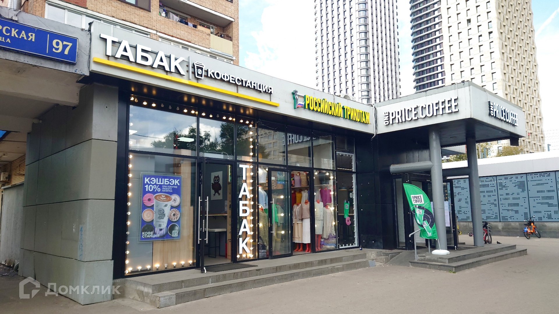 прогулок, стадион, несколько бизнес-центров, включая "Flacon".