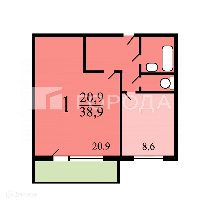 Жилая площадь 20.9 м2