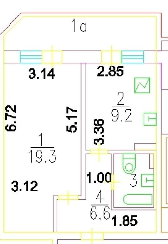 Жилая площадь 19.3 м2