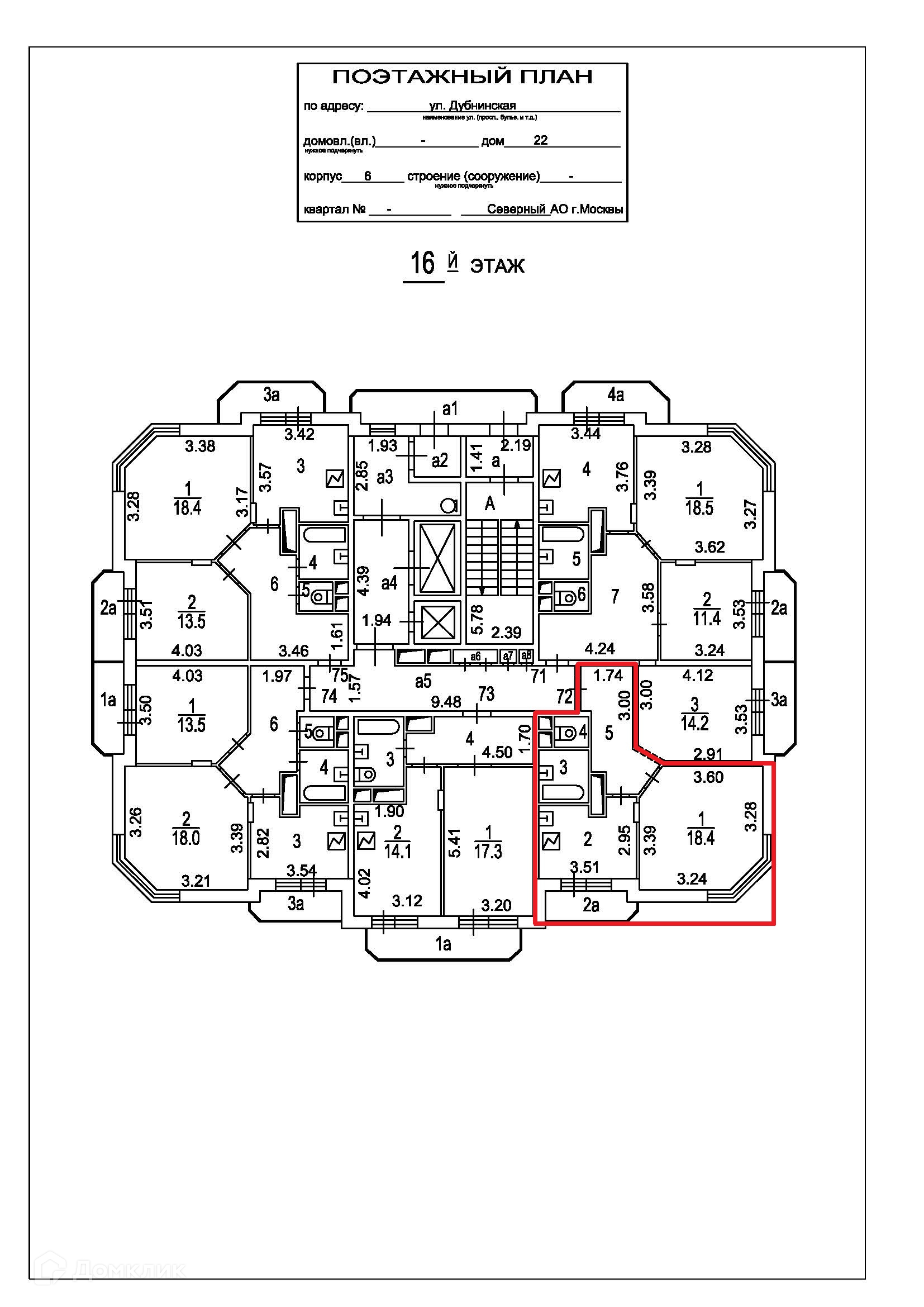 1-комнатная квартира, 39.2 м2, этаж 16 / 17, на продажу в Москве, Дубнинская улица, 22к6