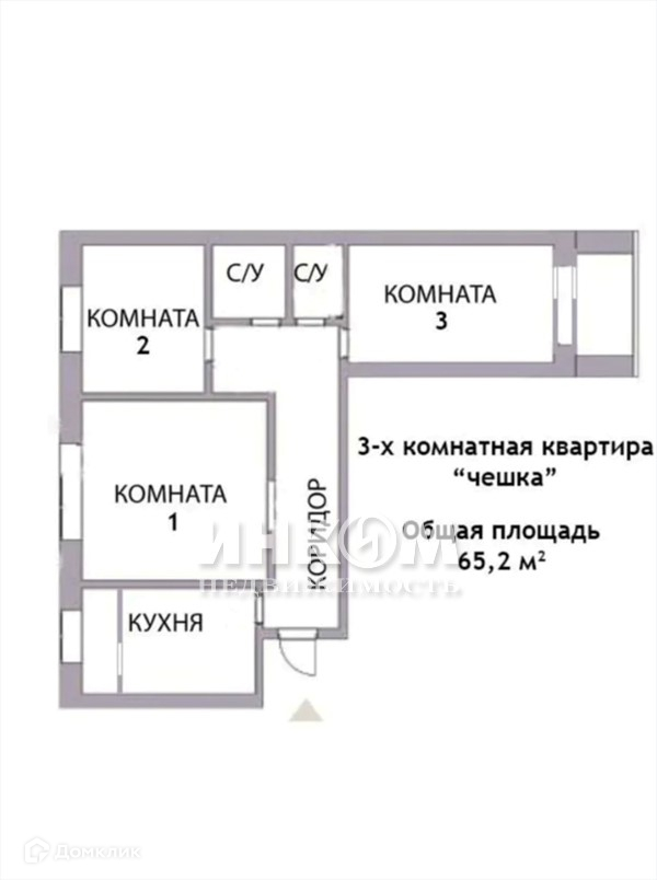 Общая площадь 65.2 м2