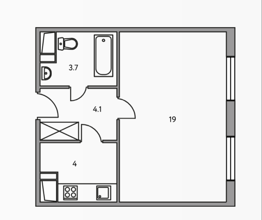 Общая площадь 30.8 м2