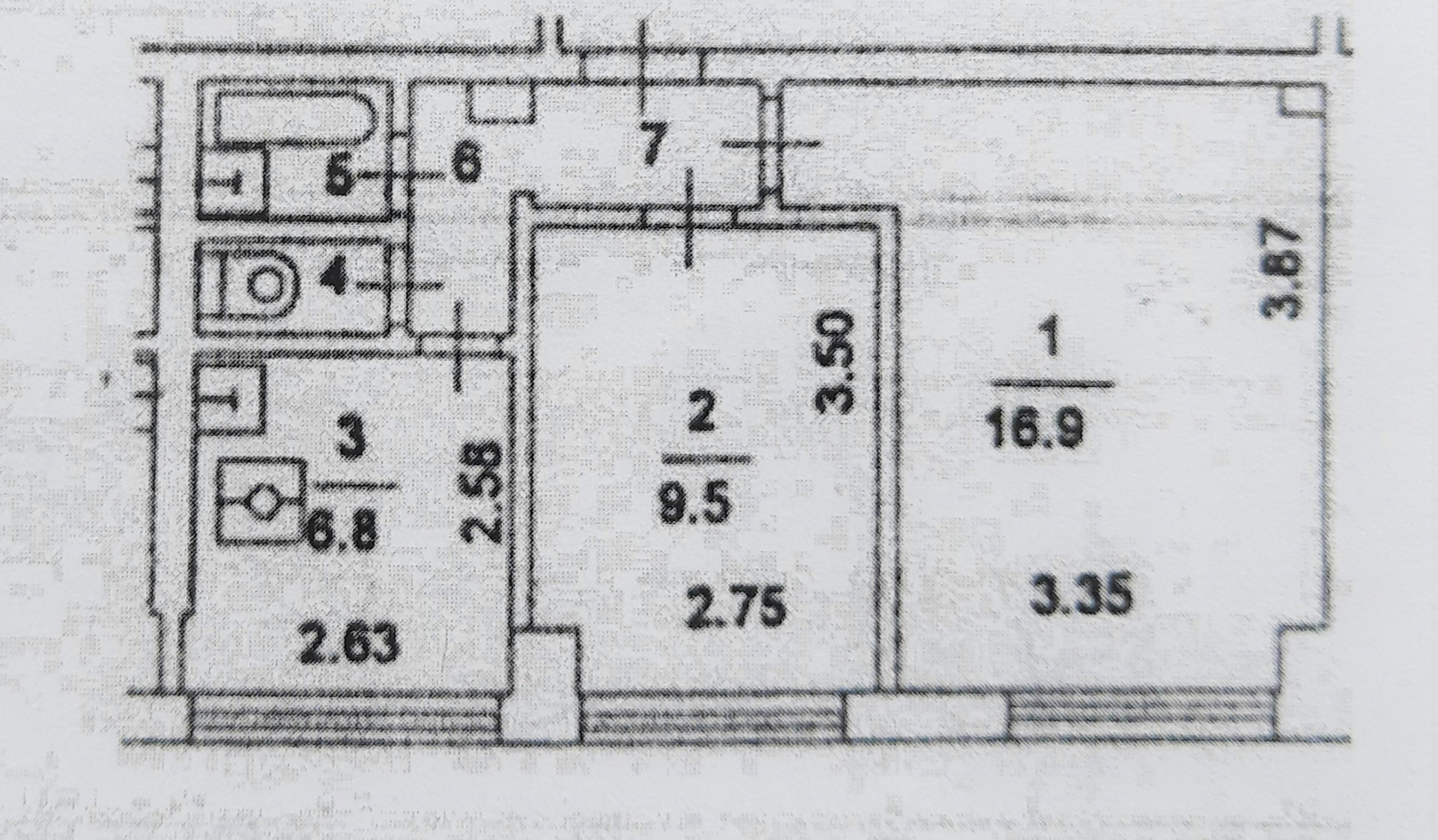 Площадь кухни 6.8 м2