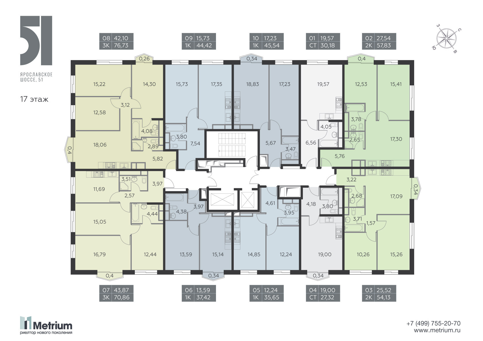 Продается 3 комнатная квартира в ЖК Я51, в новом, клубном доме комфорт-класса, с подземным паркингом, на первом этаже колясочная и рядом с домом места для хранения велосипедов. Квартира с полной чистовой отделкой white box, расположена на17/17 этажного монолитного дома, общая площадь 75,1 кв.м., жилая 42,10 кв.м. (14,30-12,58-15,22), кухня 18,6 кв.м. кухня-гостиная, 2 с/у с ванной и душевой, панорамные виды из окон. Расположение: транспортная доступность (метро, МЦК, Ярославское шоссе, ж\д станция Лосиноостровская -7 минут пешком, метро Бабушкинская-20 минут пешком. Все необходимые социальные объекты в пешей доступности (магазины, BILLA, детские сады, школы, кафе, рестораны и аптеки), 300 метром ( на другой стороне от дома) находится МГСУ с огромным современным спортивным комплексом с бассейном и в пяти минутах пешком находится благоустроенный парк-заповедник Лосиный остров, с местами для пеших и конных прогулок, велосипедной езды, отдыха у водоема, детскими и спортивными площадками. До станции метро ВДНХ 15 минут на общественном транспорте, остановка возле дома. В собственности. Быстрый выход на сделку.