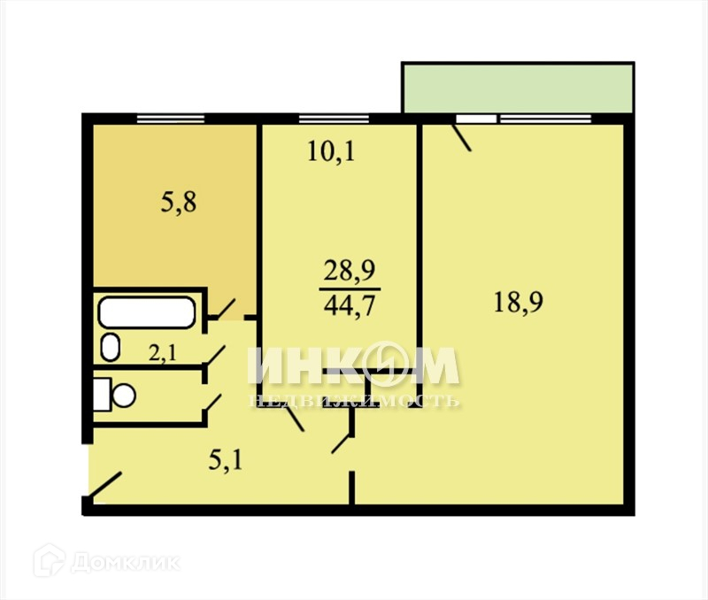 Жилая площадь 28.9 м2