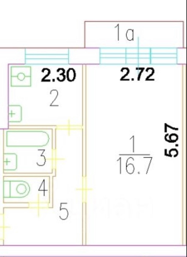 Площадь квартиры составляет 30.3кв.м. Площадь комнаты 16.7кв.м.