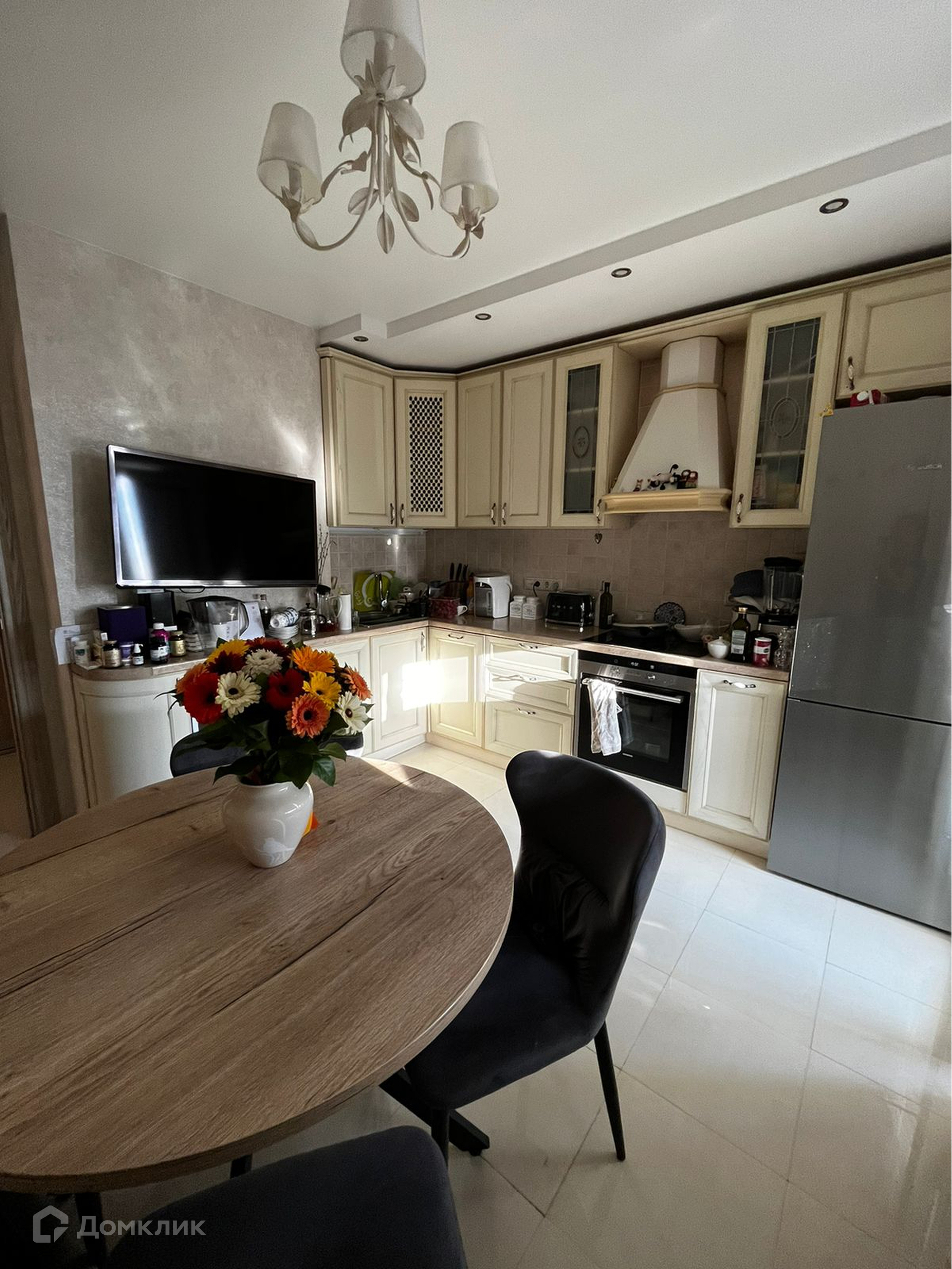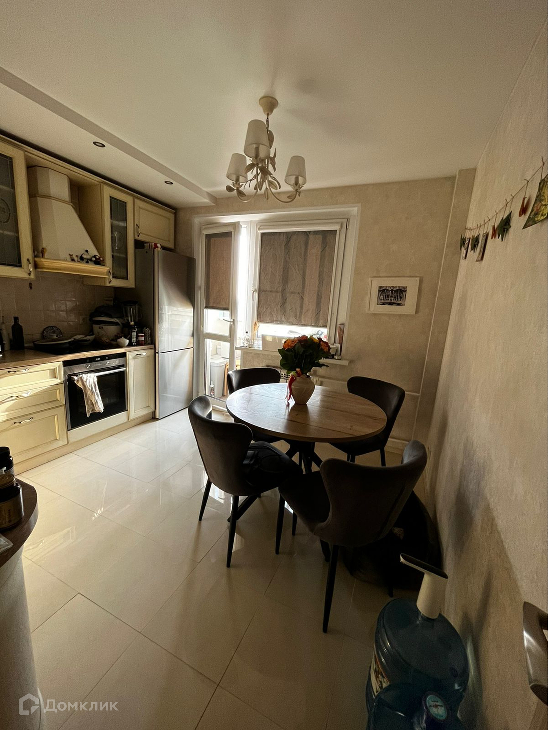 Центральное место в квартире занимает просторная гостиная с объединенной с утепленной лоджией. Второй балкон - выход из кухни. Три комнаты изолированные, имеется гардеробная, два полноценных санузла (один с душевой кабиной, второй - с большой ванной). В квартире остается в отличном состоянии кухонный гарнитур из массива ясеня, оснащенный встроенной бытовой техникой (духовка, микроволновка, посудомойка), вытяжной шкаф. Остальная мебель по договоренности.