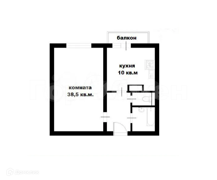Общая площадь 38.5 м2