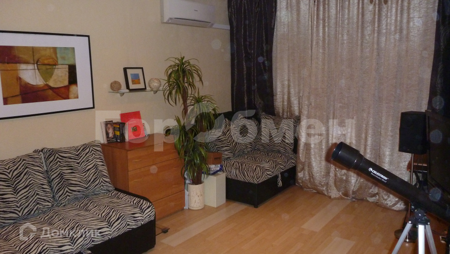 Удачная планировка квартиры: компактная прихожая, большая комната 20 кв.м., просторная кухня 10 кв.м. с балконом, раздельный санузел. В комнате установлен огромный шкаф-купе и кондиционер.