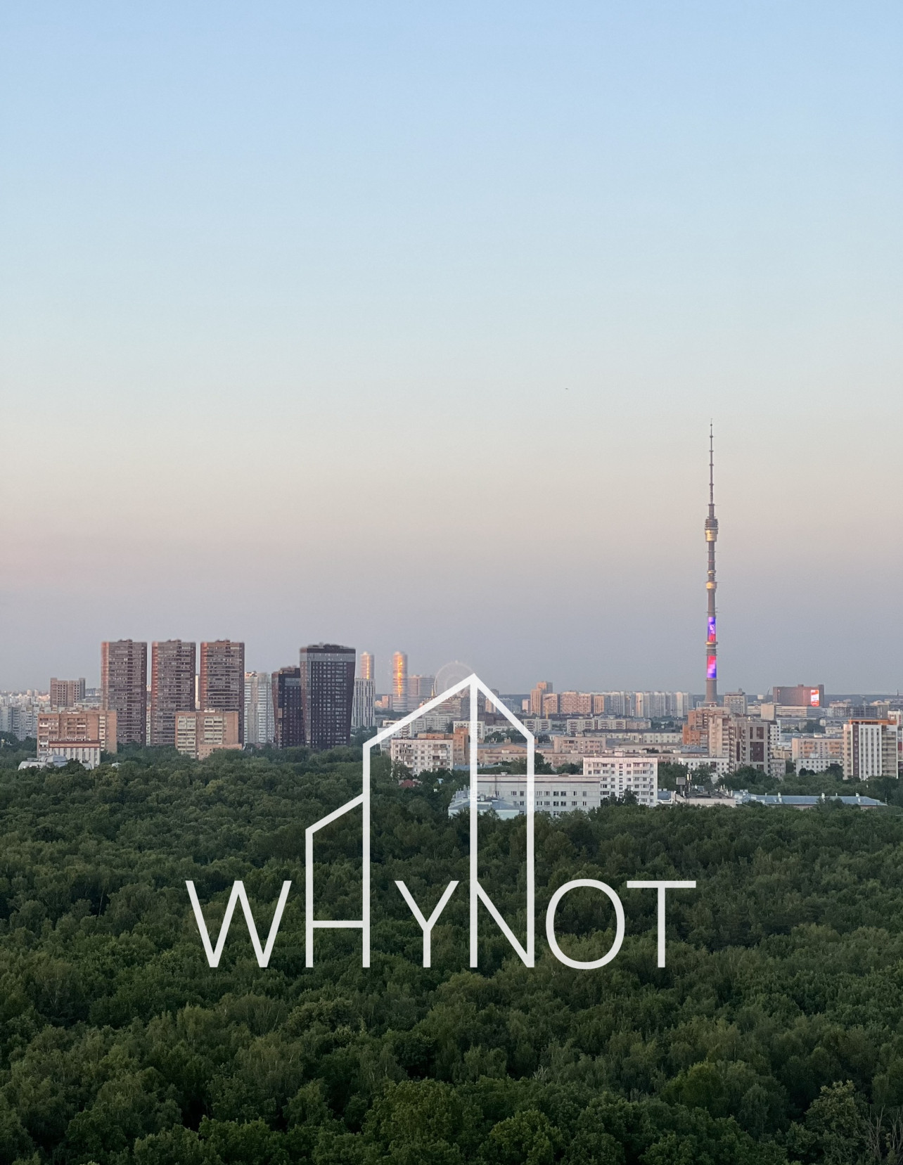 Панорамный вид на зеленый массив Тимирязевского леса и Останкинскую башню.