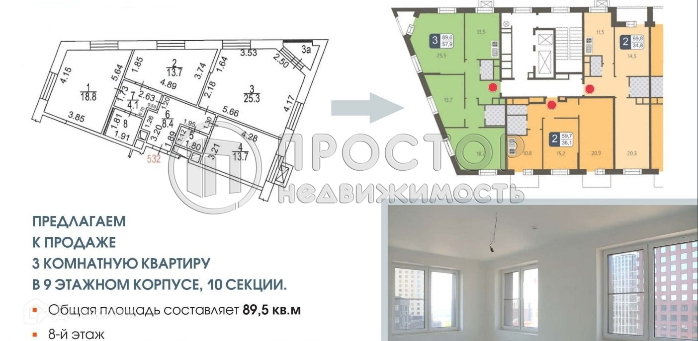 3-комнатная квартира, 89.5 м2, этаж 8 / 9, на продажу в Москве, Береговой проезд, 1А