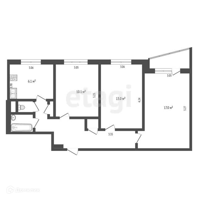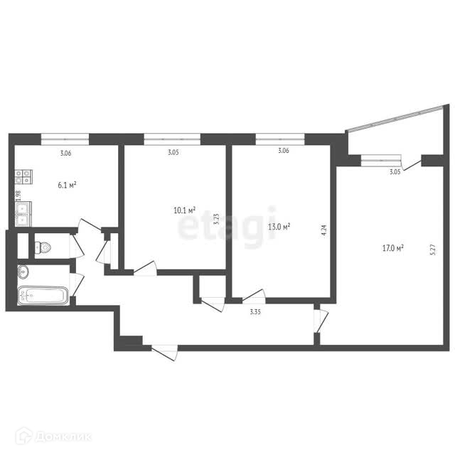 3-комнатная квартира, 61.4 м2, этаж 8 / 10, на продажу в Москве, Уральская улица, 6к1