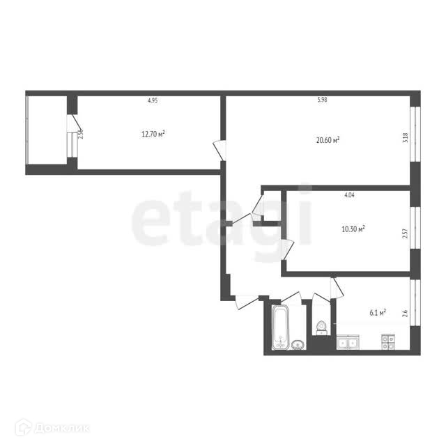 2 комнаты изолированы (12,7+1,3), гостиная (20,6 кв м)