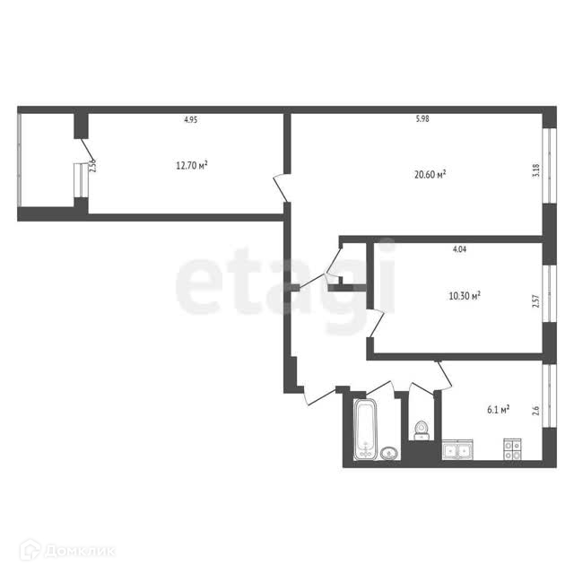 Общая площадь 59.3 м2
