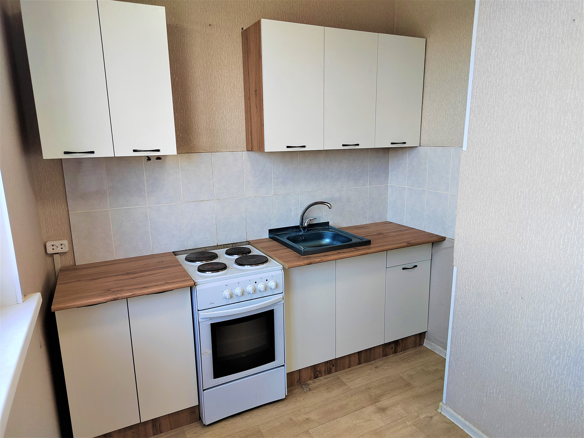 В квартире установлен новый кухонный гарнитур.