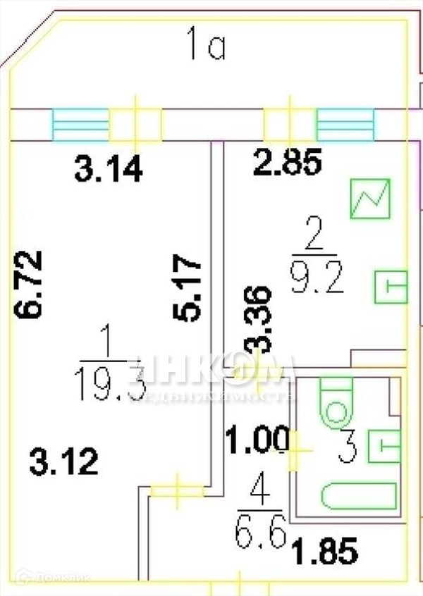 Жилая площадь 19.3 м2