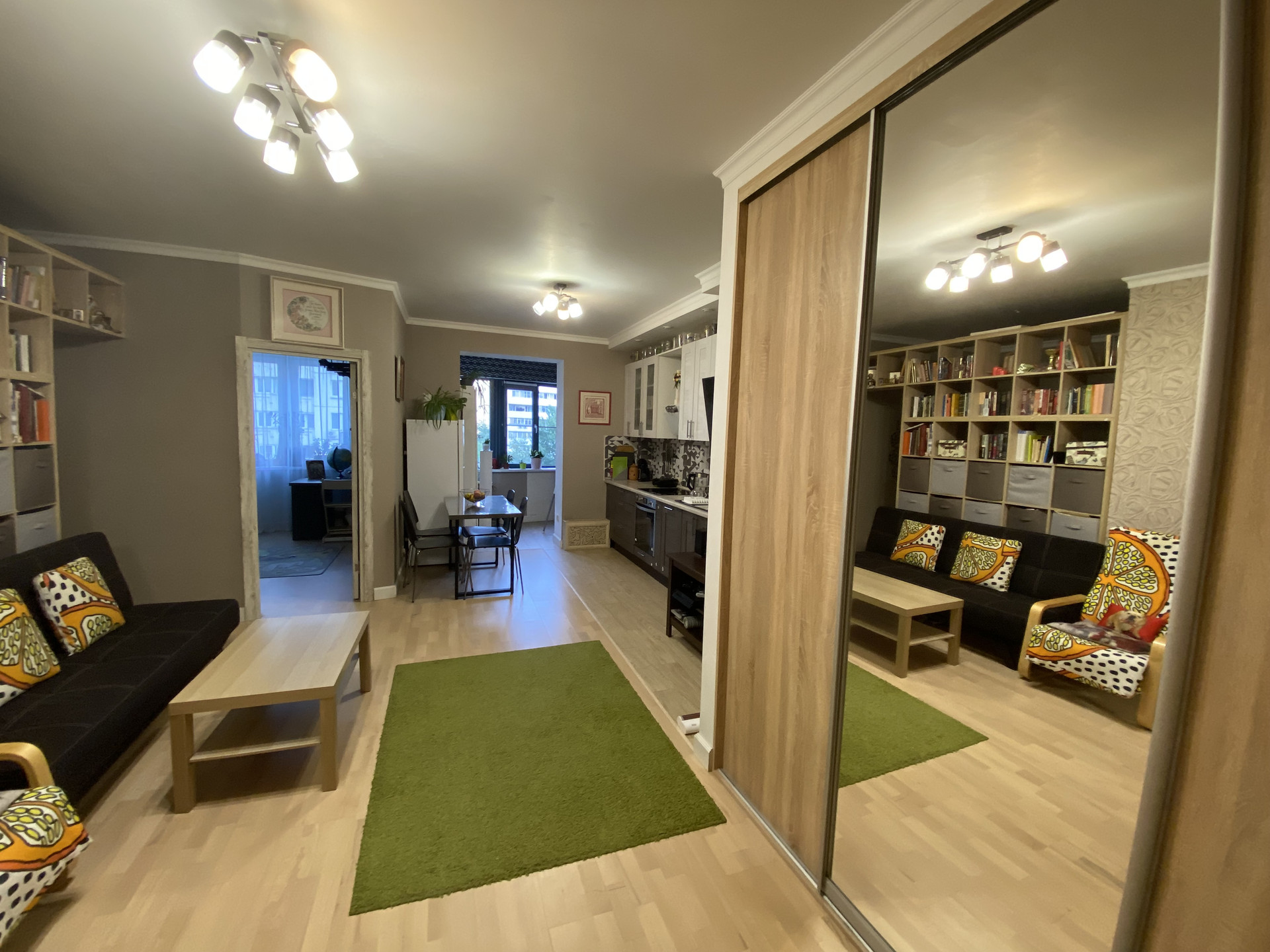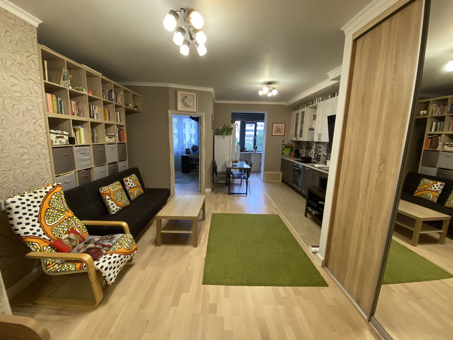 Пространство квартиры разделено на несколько частей: изолированная детская комната и кухня-гостиная с отдельными зонами: спальня, рабочий кабинет, гостиная, кухня прихожая с гардеробной, санузел. В квартире хорошее освещение, удобная мебель. Свободная продажа! Полное юридическое освобождение до сделки. 2 взрослых собственника, полная стоимость в договоре.