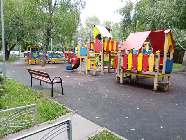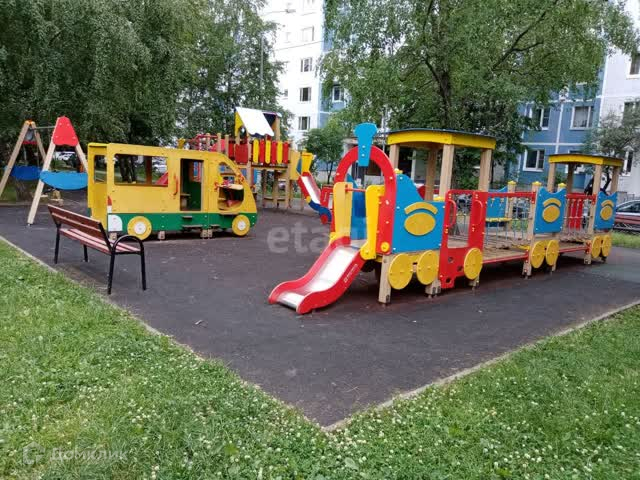 Детские и спортивные площадки во дворе, футбольная и хоккейная коробка.