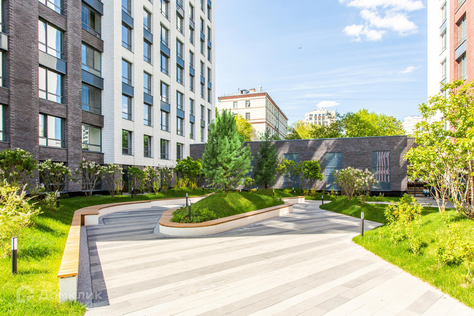 Широкоформатные алюминиевые окна, высокие потолки  3,1 м. Из окон открываются виды на зеленый двор,