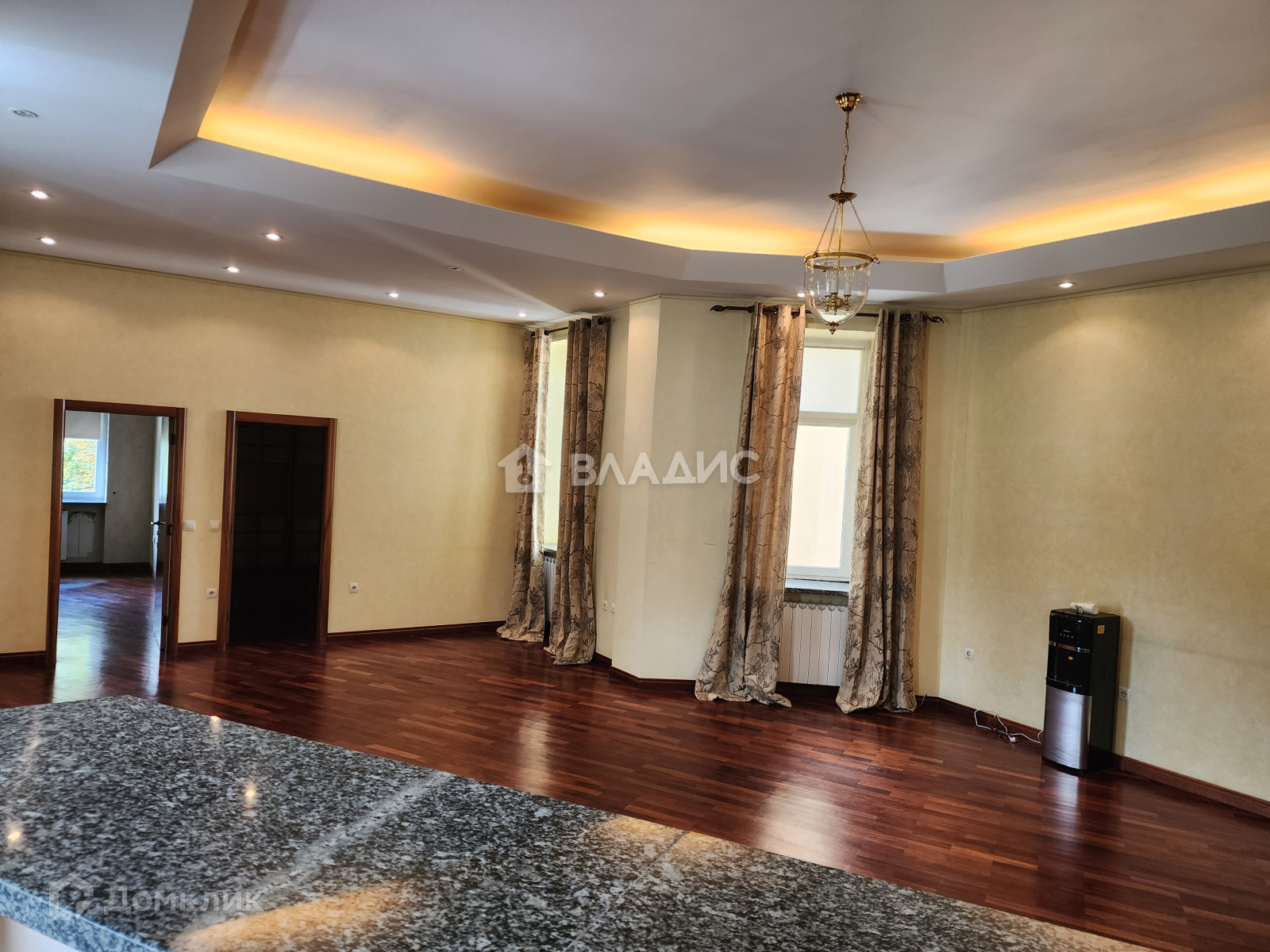 Общая площадь 135,5 квм. Потолки 4 м. Кухня - гостиная, 3 изолированных комнат, 3 сан.узла.