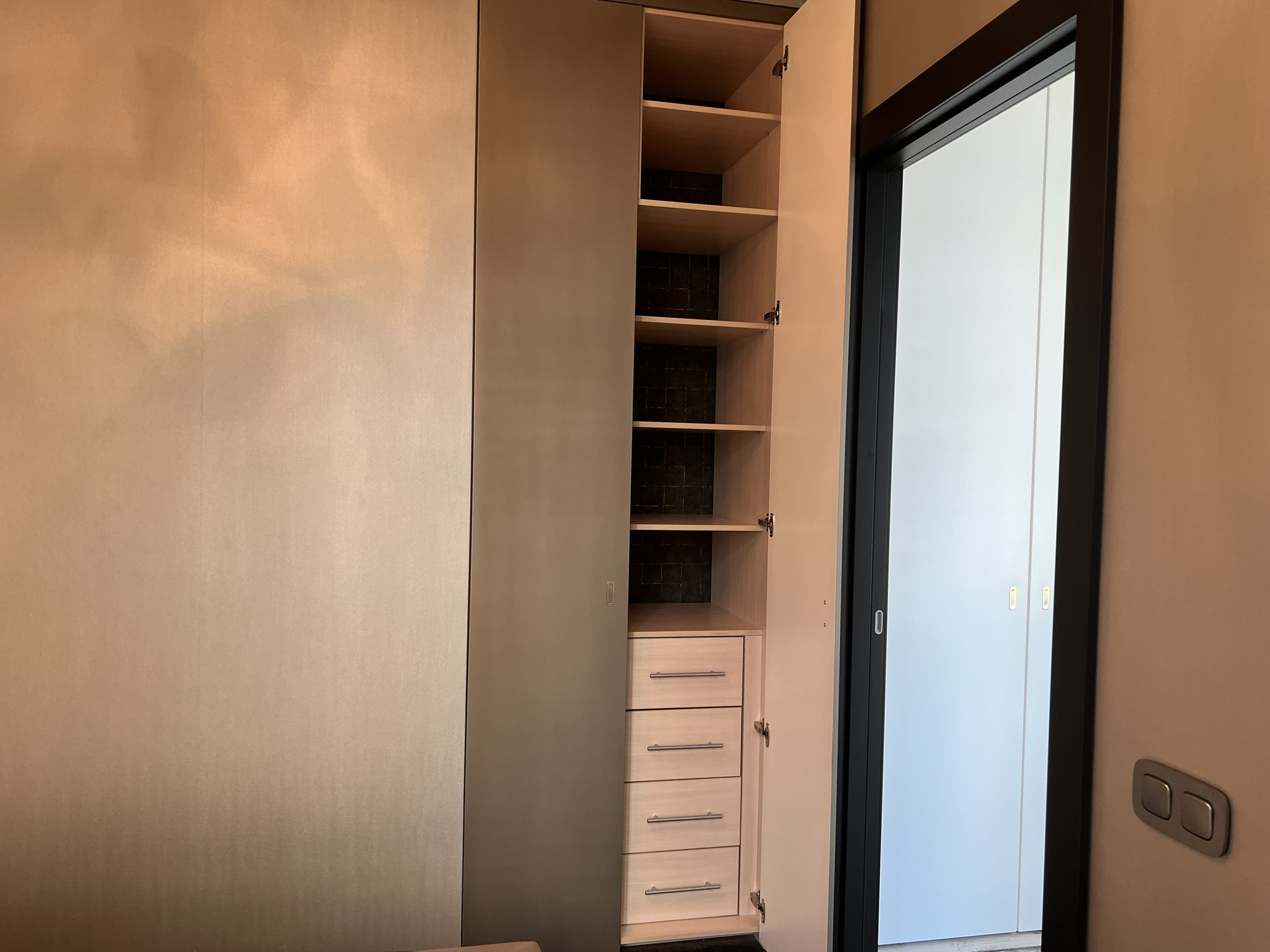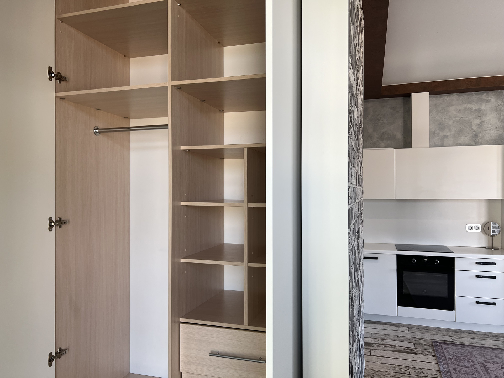 Три встроенных глубоких шкафа для хранения.  Машина-место в подземном паркинге 17.8 кв.м входит в стоимость квартиры. Апартаменты.