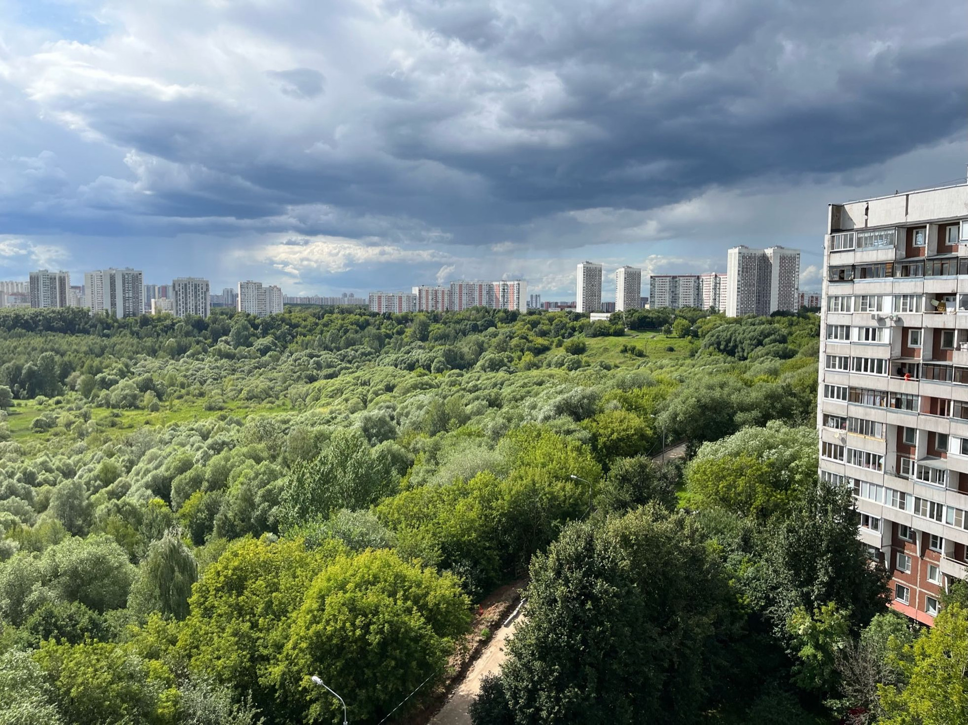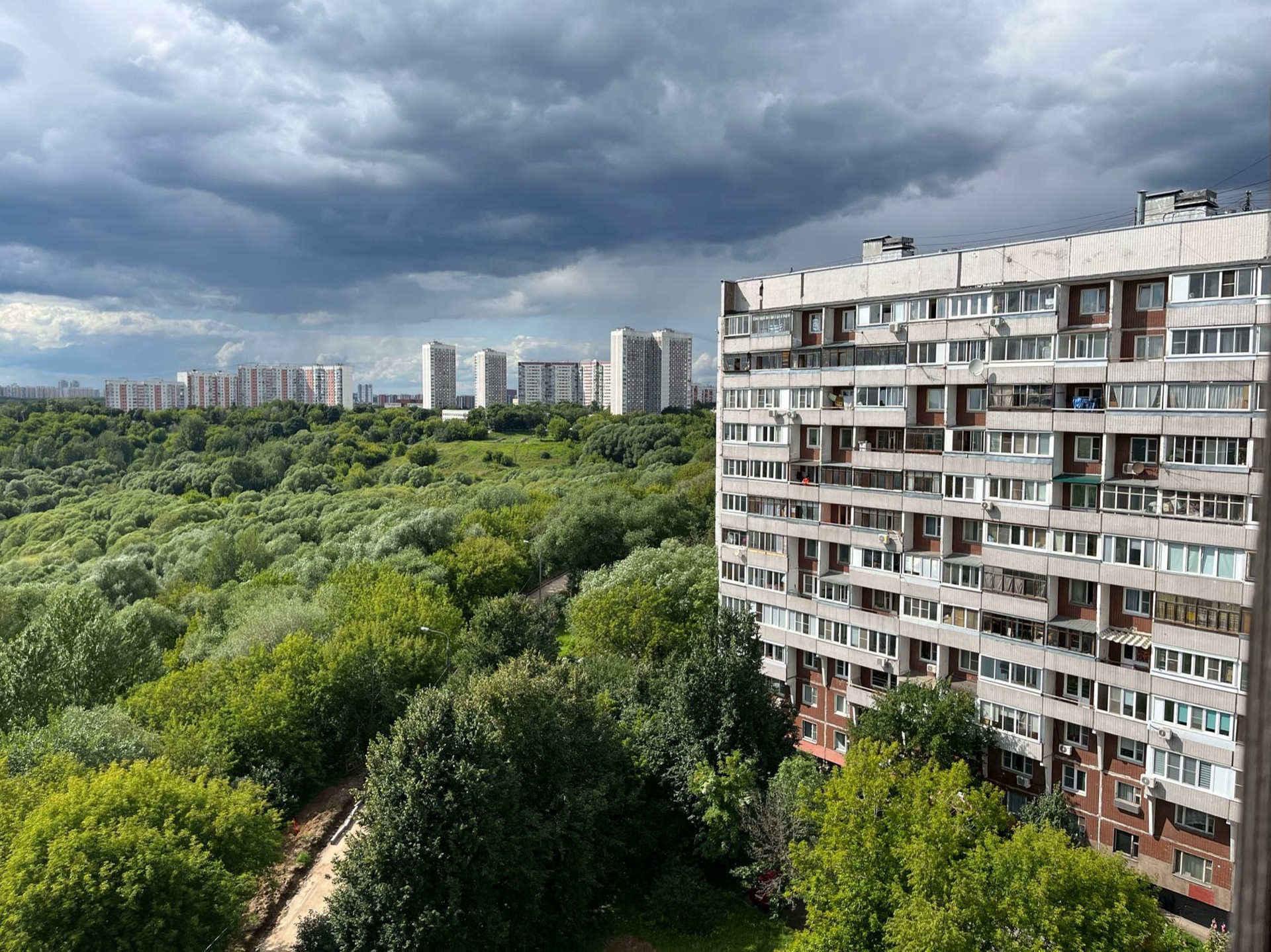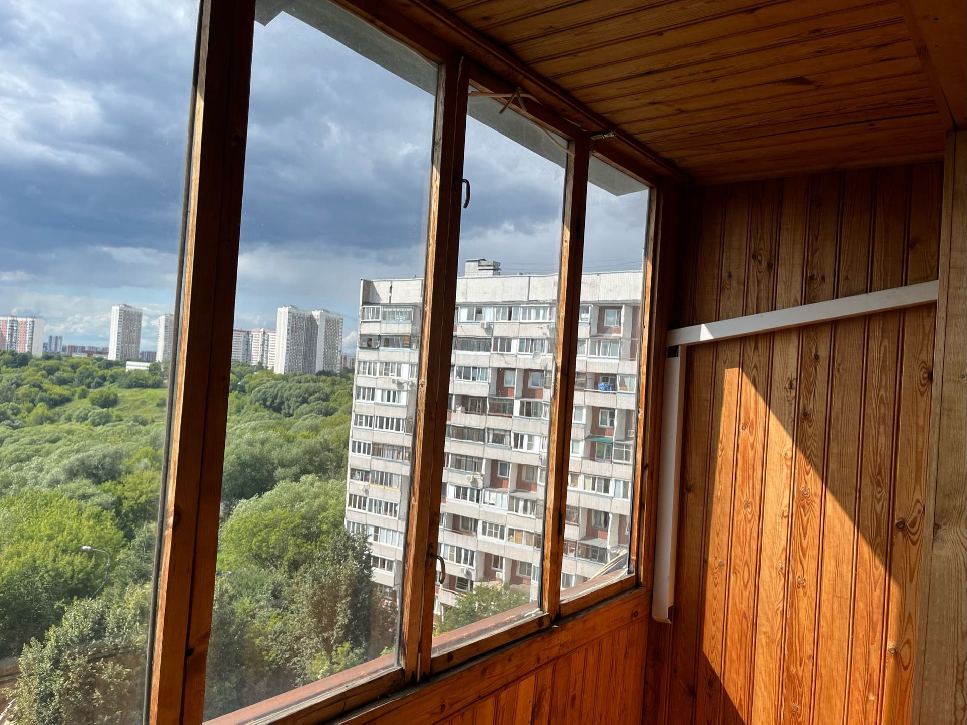 Дом 1985 года, серия П-46, расположен на бровке природного заповедника Тушинская чаша с длинной аллеей для прогулок.