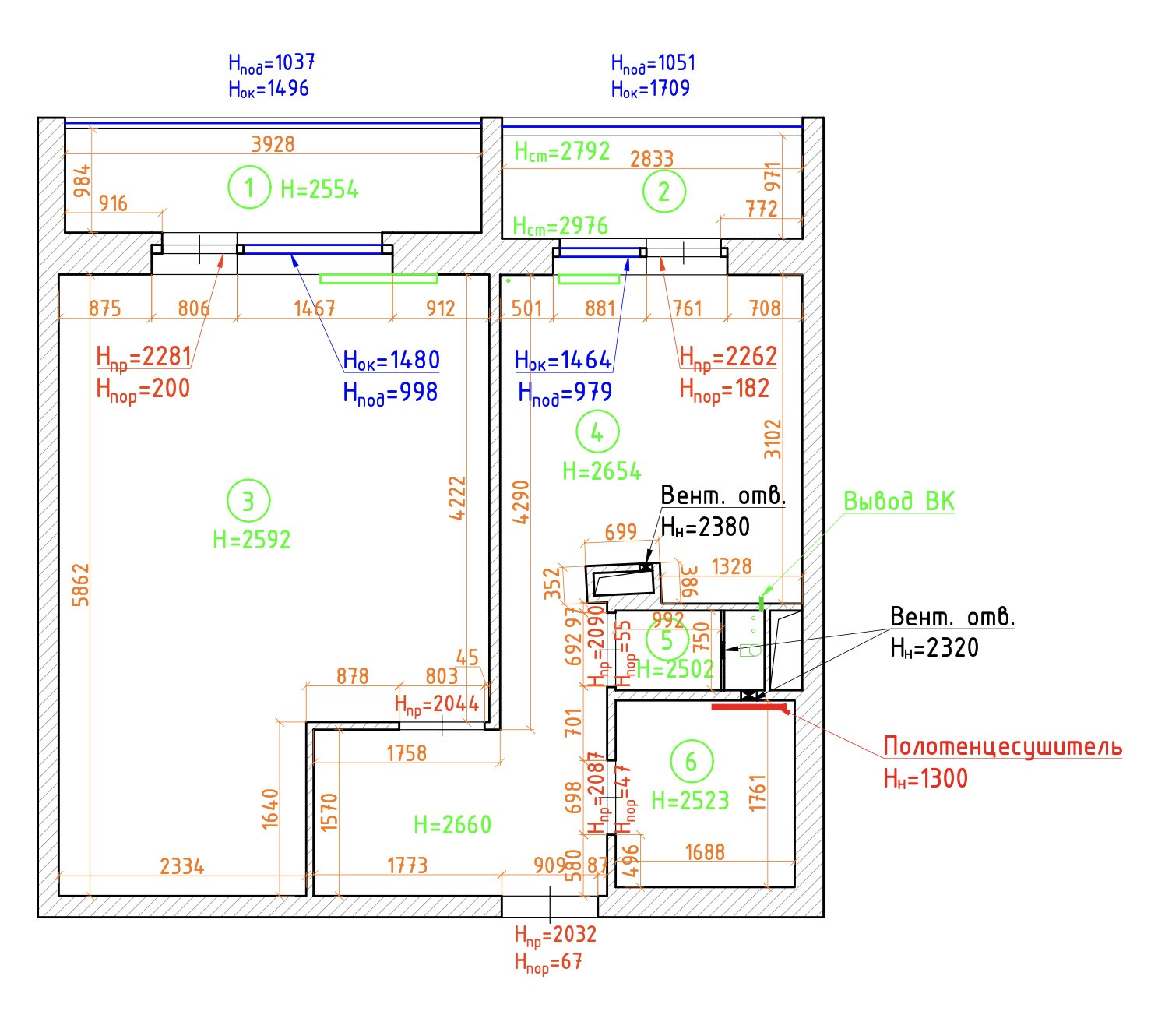 Высота потолков 2.65 м
