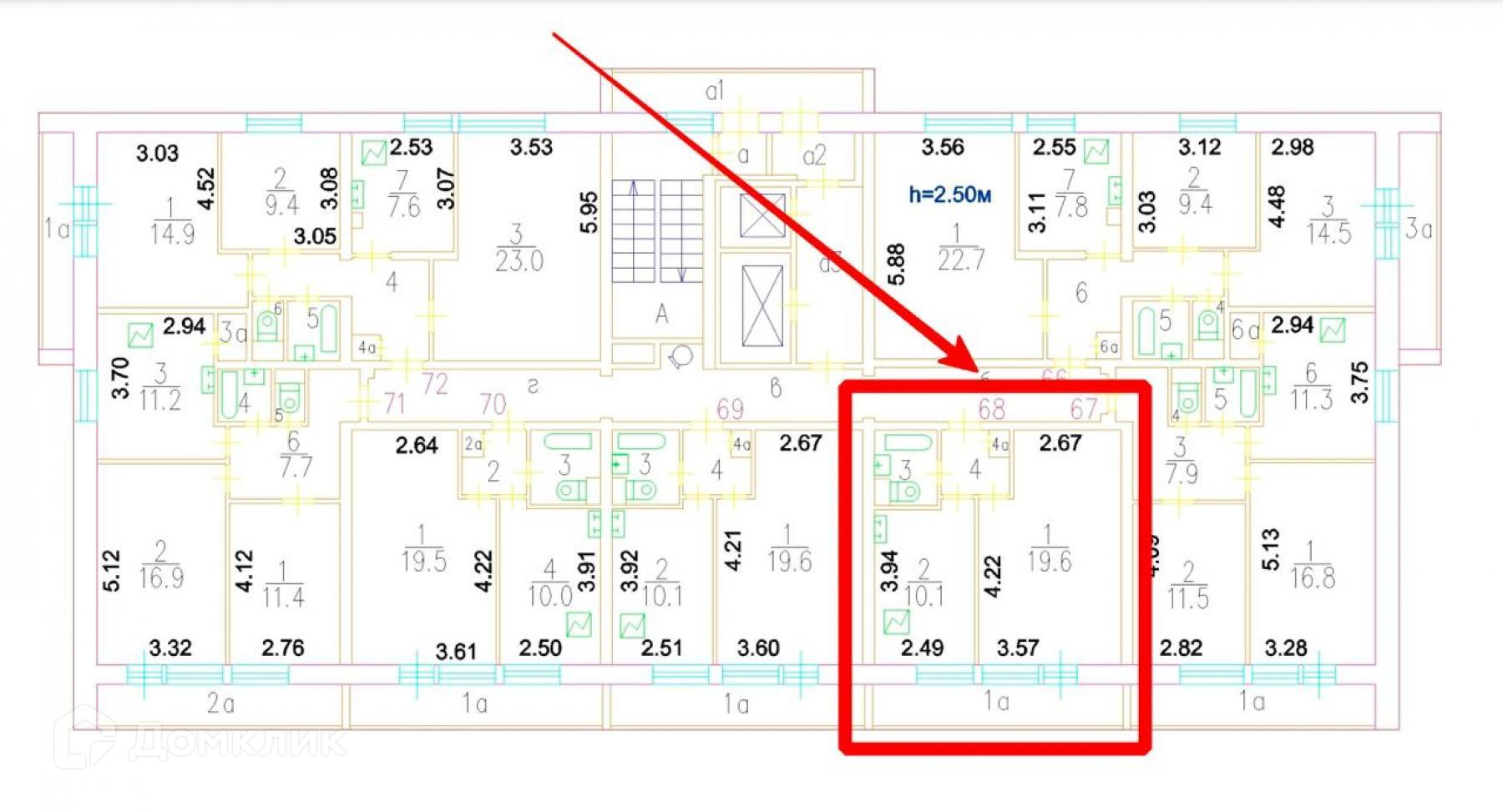 Высота потолков 2.5 м