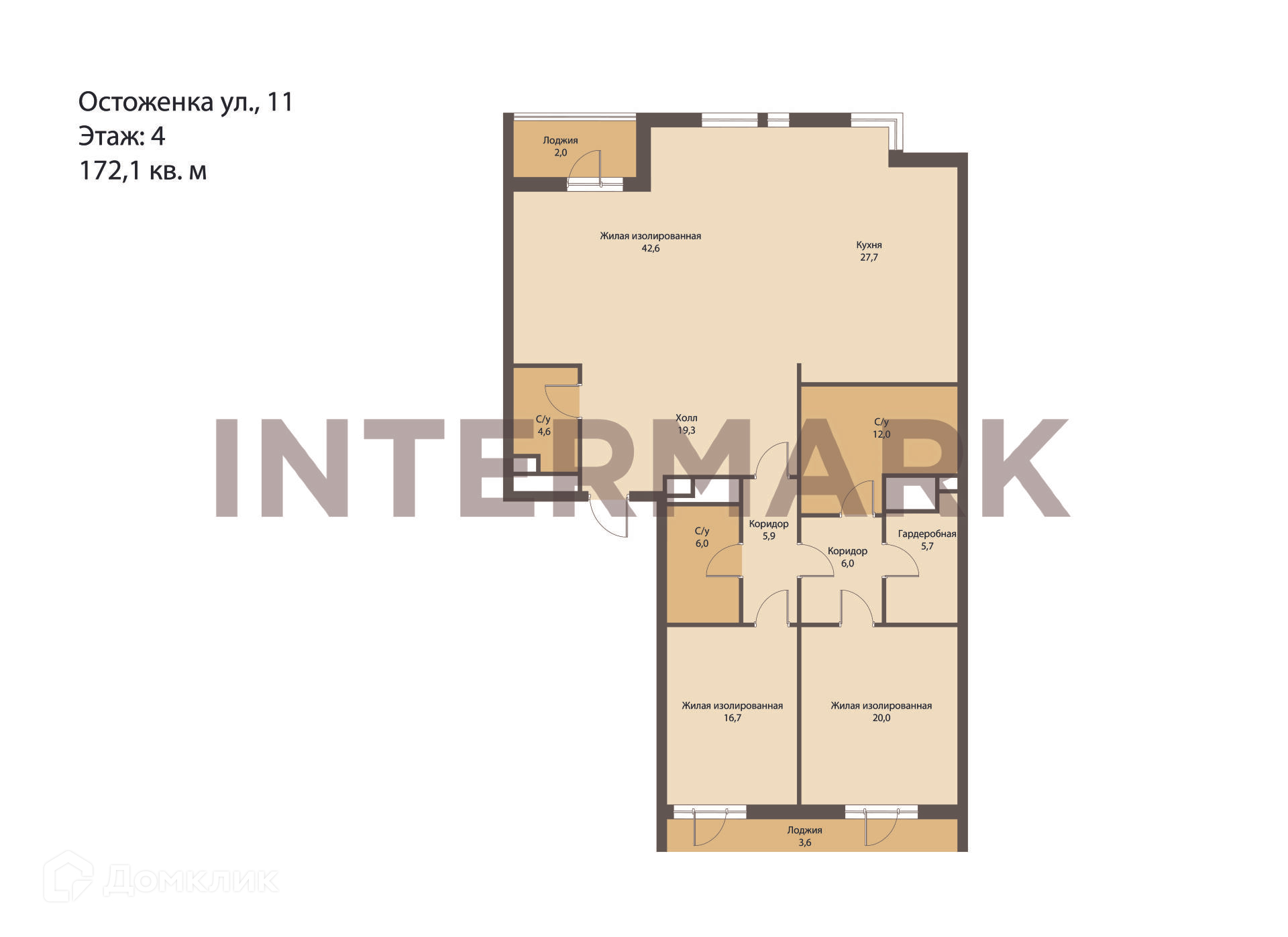 3-комнатная квартира, 172.1 м2, этаж 4 / 6, на продажу в Москве, улица Остоженка, 11