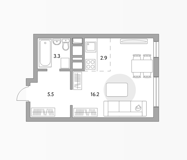 Общая площадь 28 м2