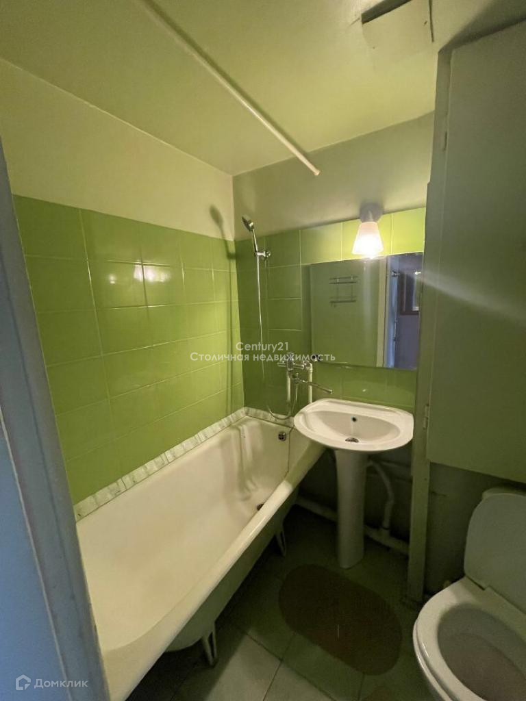 - Санузле совмещённый, ремонт выполнен  в приятных зелёных оттенках.