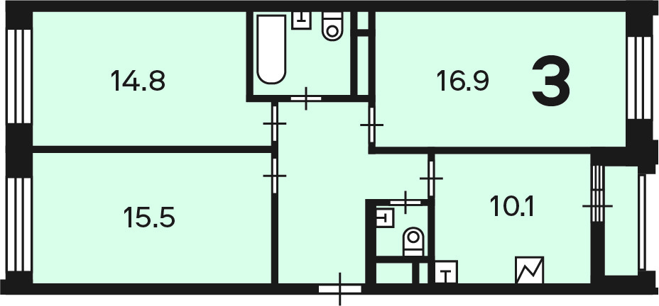 Количество комнат 3