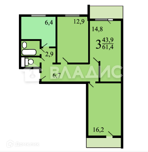Общая площадь 61 м2