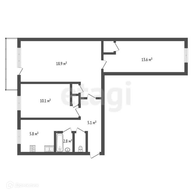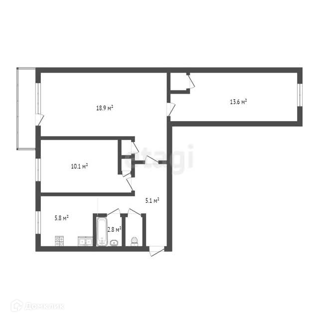 Общая площадь 59 м2