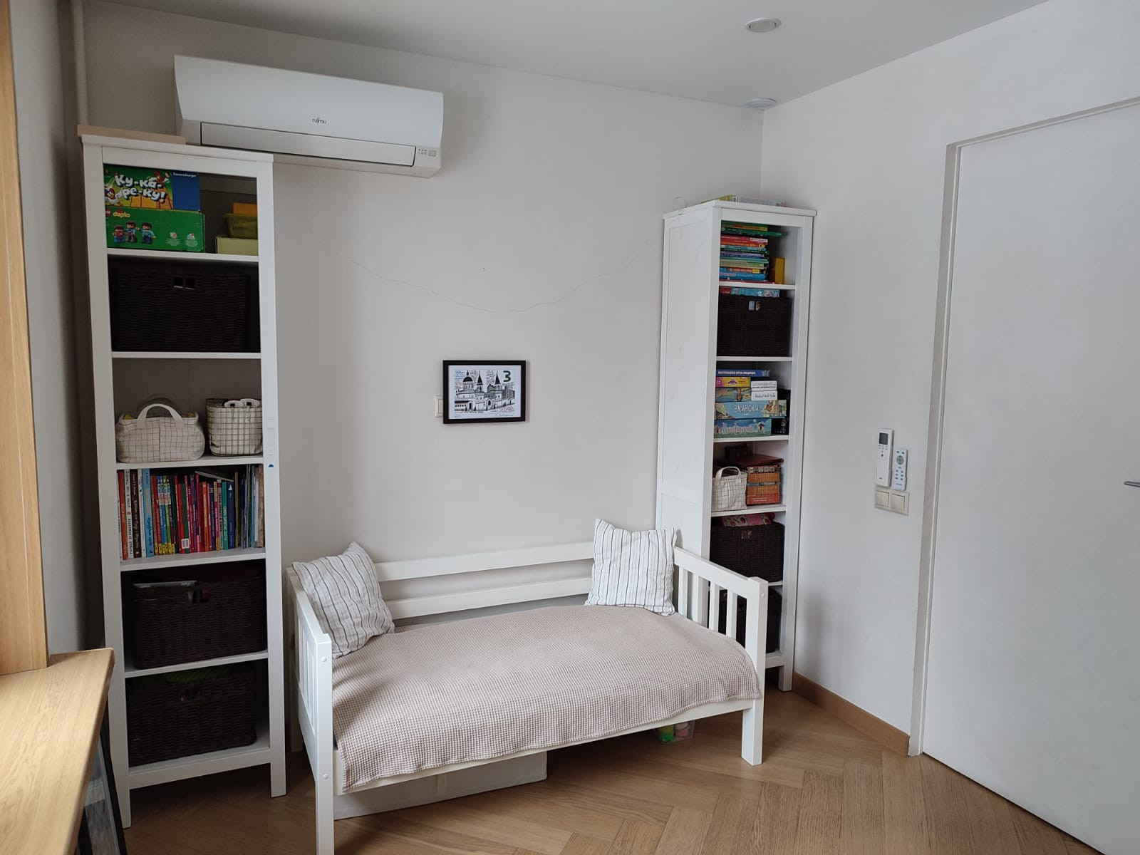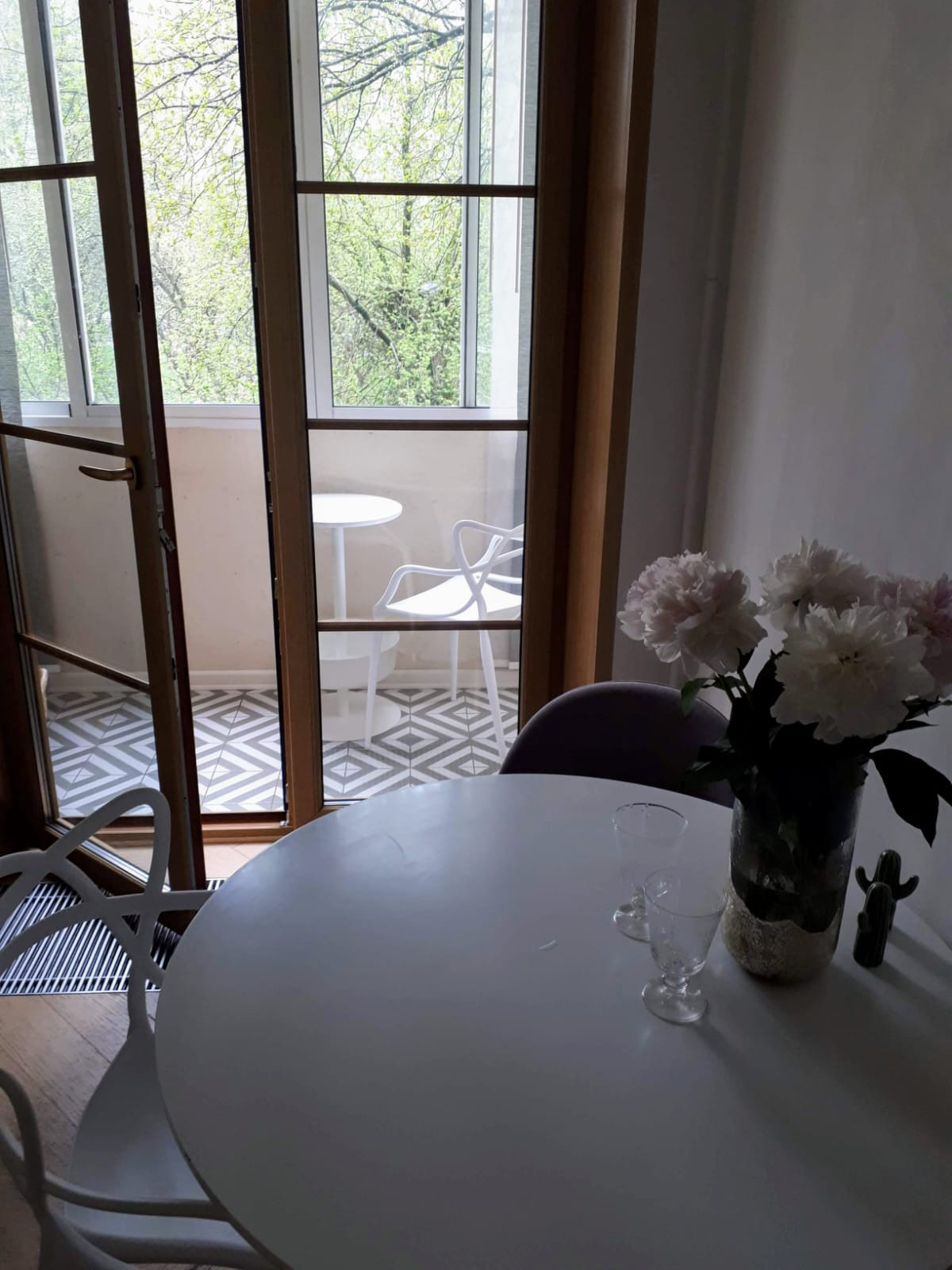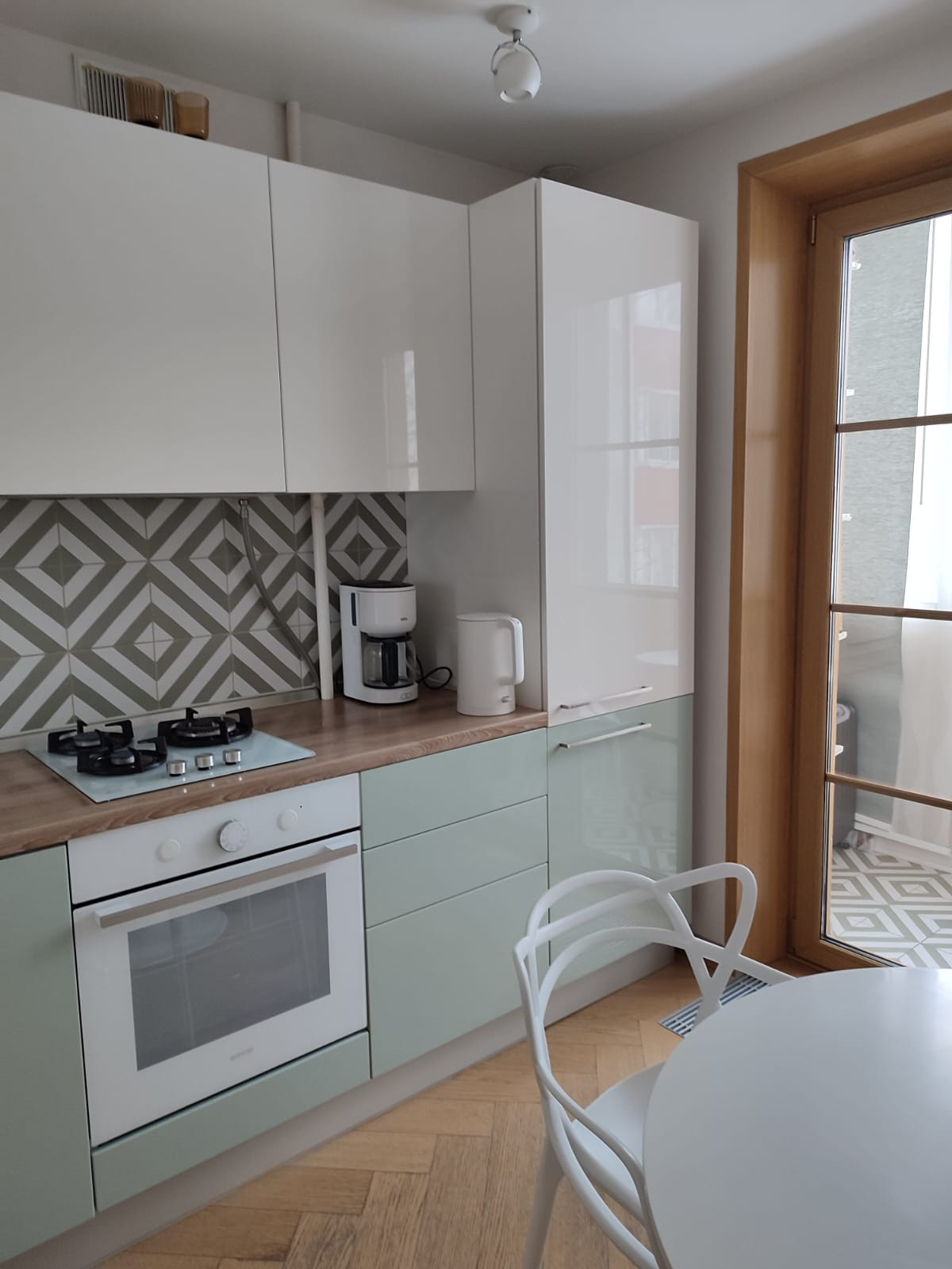 Квартира с дизайнерским свежим ремонтом. Тройной стеклопакет. На кухне окна в пол полностью открываются на застекленный балкон увеличивая пространство кухни. 2 смежные комнаты, кондиционер. Много места для хранения - большой встроенный шкаф в комнате, 2 встроенных шкафа в коридоре. Су с ванной, гигиеническим душем. Дом расположен на тупиковой улице, красивый вид на гольф клуб, вокруг много зелени, вид из окон на деревья. Один взрослый собственник, вся сумма в договоре.