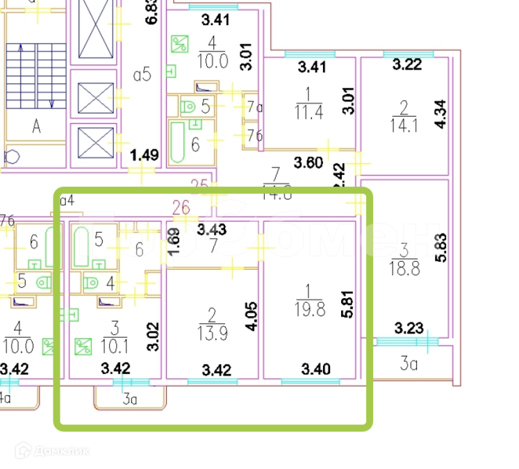 Общая площадь 57.7 м2