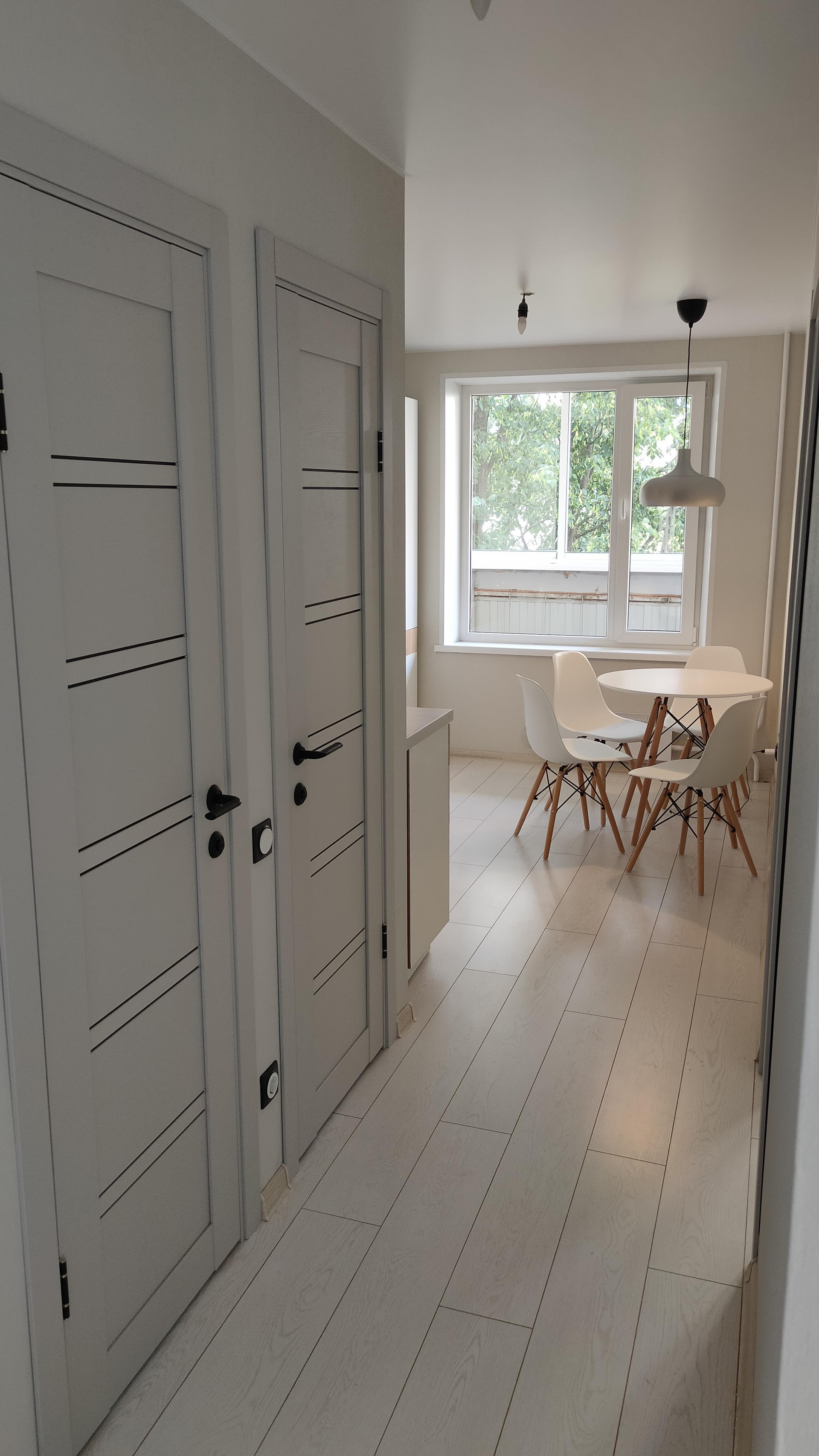 Квартира после полного ремонта. Заменены: вся электрика, трубы водоснабжения и канализация; полностью снесена и заново восстановлена сантех кабина; новые потолки; заменены окна; установлены новые двери и полы (ламинат).